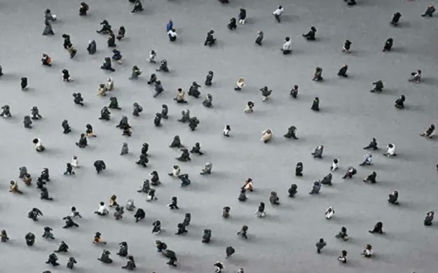 Une autre série de photos, prise en caméra plongeante montre aussi des déplacements humains (dans de grands espaces, des places, etc.)