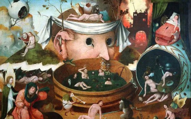 Les visions hallucinatoires de Jérôme Bosch sont superbes, impressionnantes. Sur les cinq toiles présentées, des centaines de figurines, de formes hybrides, moitié humaines, moitié objets, des monstres, sont occupées à des activités étranges. Les couleurs rougeoyantes ou sombres de cet enfer grouillant, surpeuplé, semblent émerger d’un cauchemar.