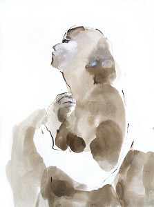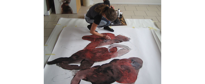 Ses personnages évoluent dans un espace blanc, peinture blanche sur toile ou papier blanc, de l’immaculé pour accueillir ses corps dansant, tendus, étirés ou au contraire refermés sur eux-mêmes, repliés. Debout, immobiles, allongés (en sommeil ?), recroquevillés les uns contre les autres, ou en action, ses personnage sont avant tout des corps. Féminins ou masculins, de dos ou de face ? Une équivoque souhaitée par l’artiste qui désire peindre simplement des êtres humains.*