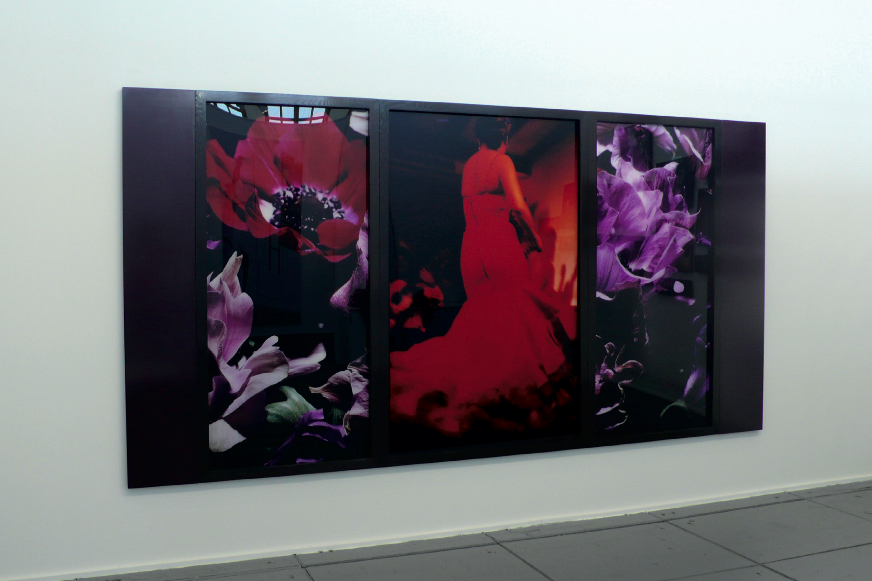 La vidéo occupe aussi l’esprit de l’artiste qui a eu besoin très tôt d’entamer un travail centré sur le mouvement, la plasticité des corps. Les robes des danseuses de tango ou de flamenco, le corps partiellement nu de la danseuse orientale, filmés parfois au ralenti, révèlent la sensualité, l’excitation retenue. Une autre vidéo (monochrome), montre une nageuse se mouvant dans un bassin transparent entre origine de la vie et danger d’étouffement.