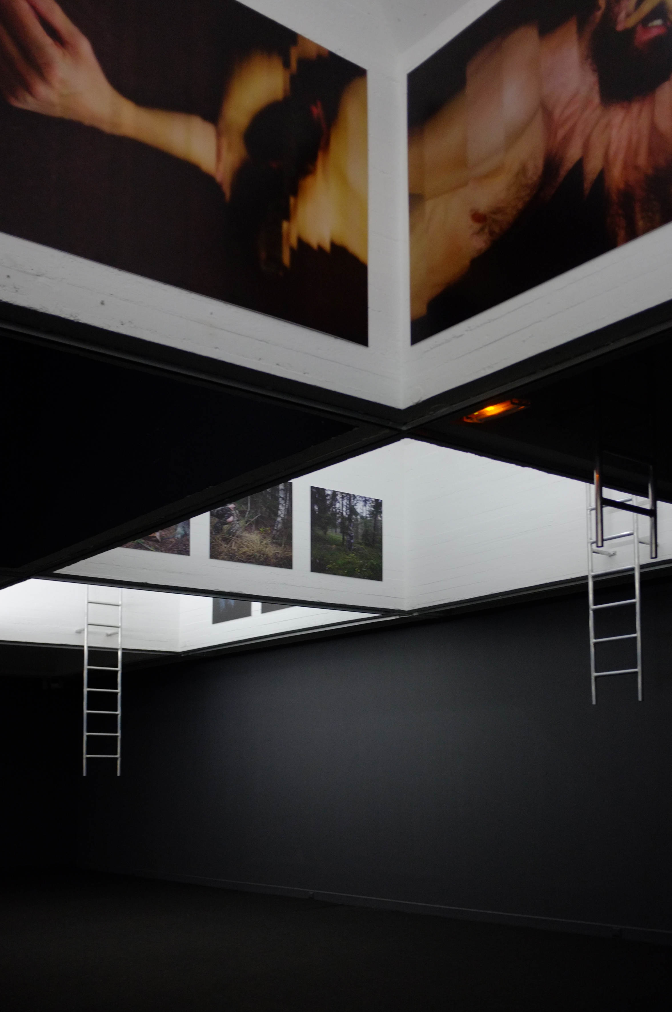 Une grande photo à taille réelle de l’installation fait office de faux miroir (les objets sont tous là, mais disposés différemment), créant ainsi une mise en abyme troublante entre le virtuel et le réel.