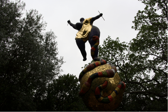 Le « Jardin des Tarots » a été une nécessité vitale pour Niki. Il manifeste son besoin de sublimer ses monstres intérieurs par son art. La lecture psychanalytique lui étant peu connue et fâchée avec la psychiatrie qui lui aura fait subir dix électrochocs et déchiré la lettre de son père, elle se tournera vers le symbolisme des cartes du Tarot pour donner du sens à ses symptômes et résoudre ses difficultés à vivre : « La valeur ésotérique, dit-elle, des cartes du Tarot m’a donné une plus grande compréhension du monde spirituel et des problèmes de la vie et aussi un éveil aux difficultés qui doivent être surmontées pour qu’on puisse à la prochaine épreuve et à la fin du jeu trouver la paix intérieure et le jardin de paradis ».