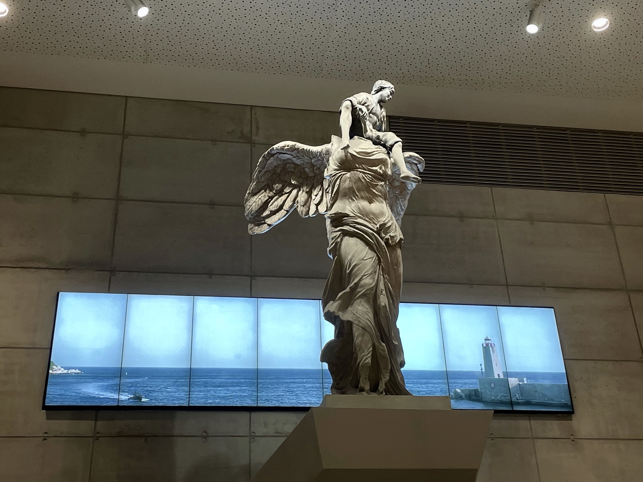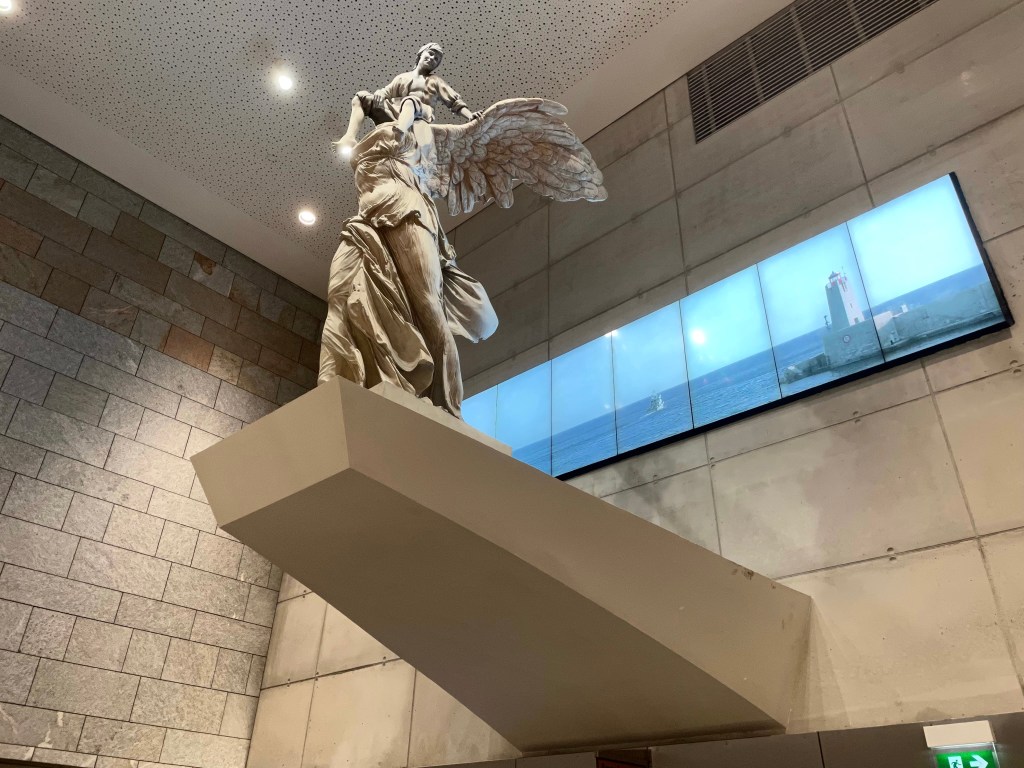 Il était donc logique pour Ernest Pignon Ernest de célébrer le nom de la ville en s’inspirant de la plus belle des statues symbolisant la Victoire, celle de Samothrace conservée au Louvre.
