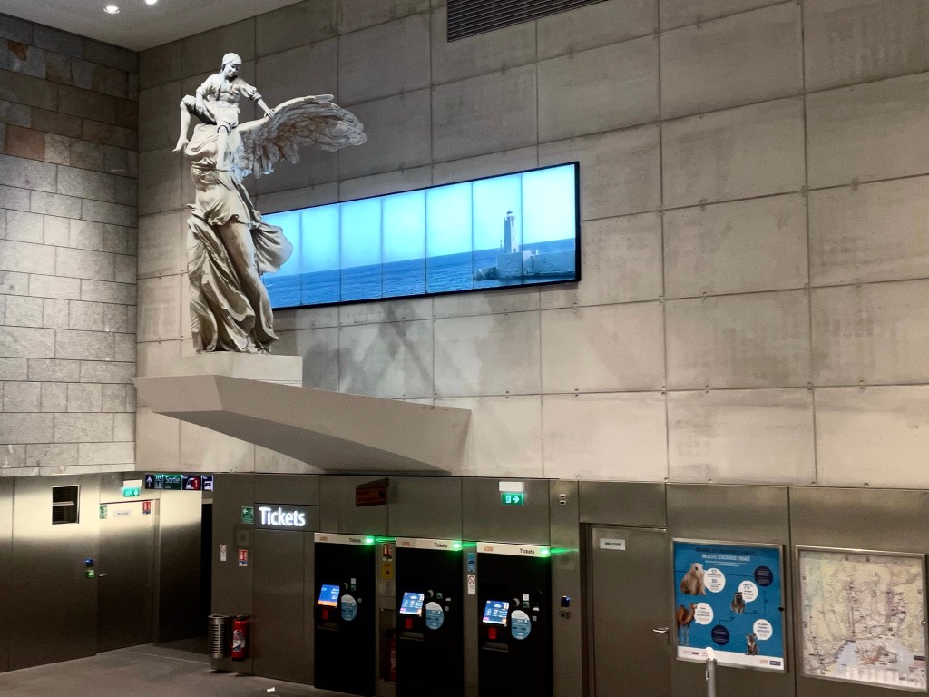 Derrière la statue dressée sur une proue de navire, un écran diffuse en direct une large vue de l’entrée du port, ouvrant sur la Méditerranée et au-delà sur le monde, un rappel de l’incroyable histoire du plus célèbres des Niçois, « Héros des deux mondes ».