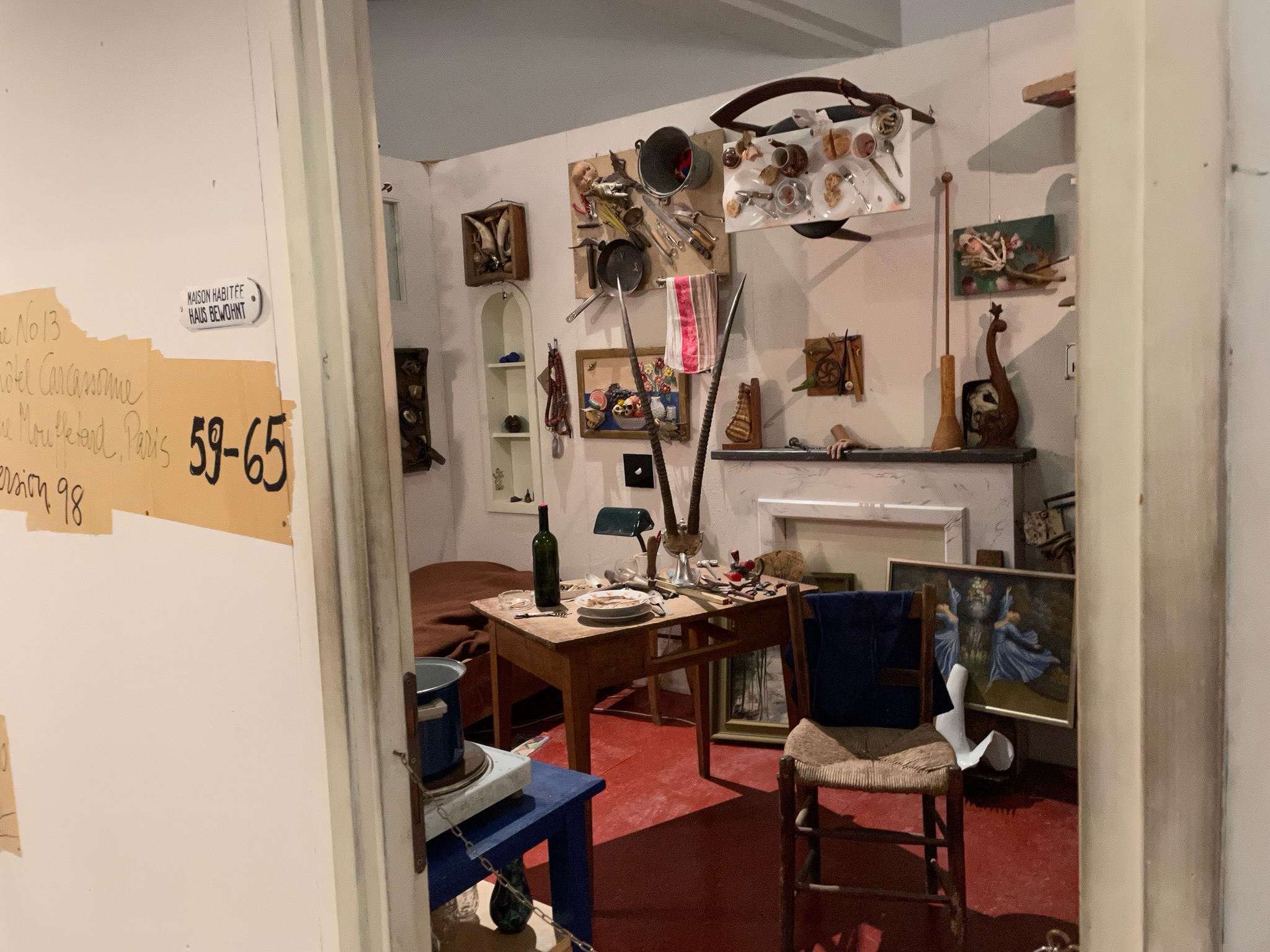 Située à l’hôtel Carcassonne, rue Mouffetard à Paris (quartier latin), cette petite pièce contenant sa vaisselle, son lit, son pauvre mobilier, fut de 1959 à 1965 son lieu de vie et de travail à son arrivée à Paris. Véritable concentré d’idées matérialisées, (l’antre des premiers « Tableaux-Pièges », cette chambre contient également en puissance des œuvres à venir.