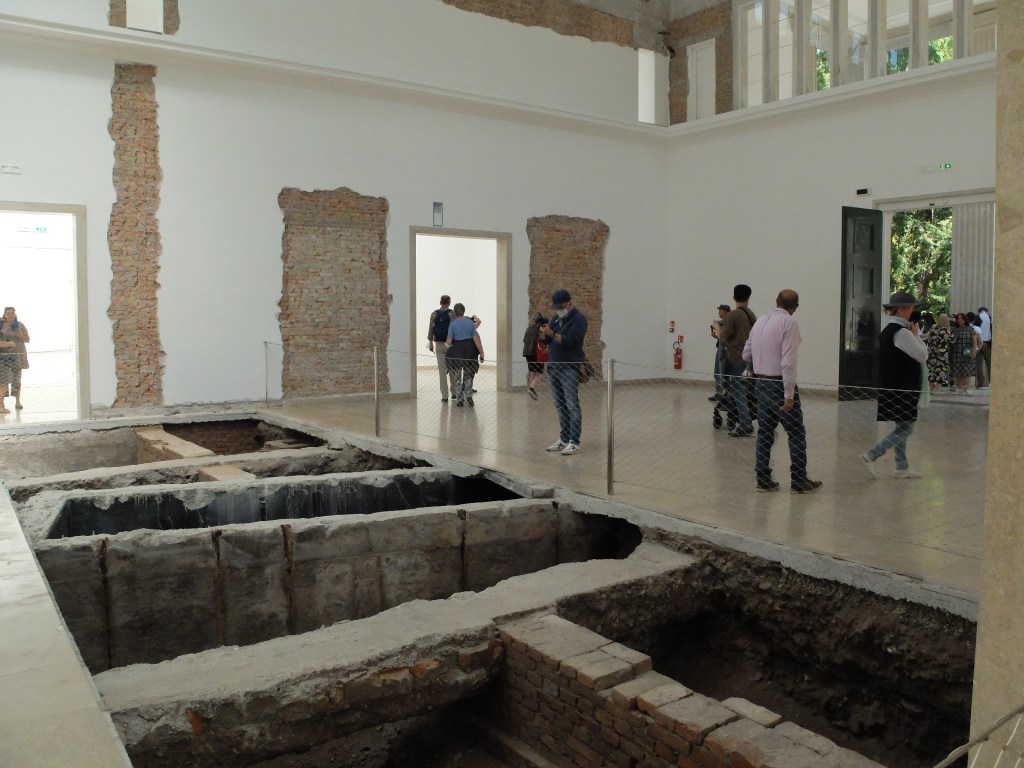 Le Pavillon allemand a été en partie déconstruit, nous montrant son sous sol et les murs de brique. Une vision archéologique.