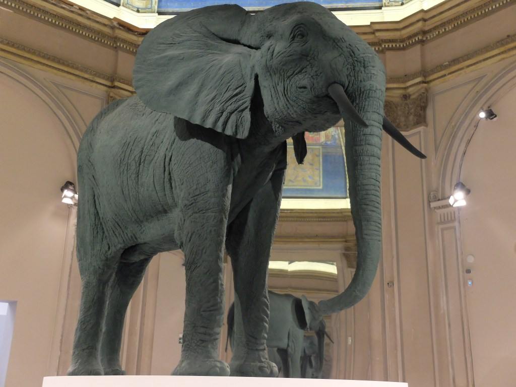 Dans le Pavillon central, à l’entrée, l’Elephant vert très réaliste de l’Allemande Katharina Fritsch.
