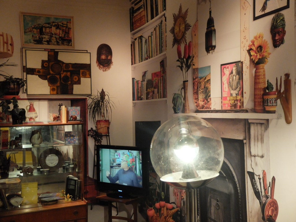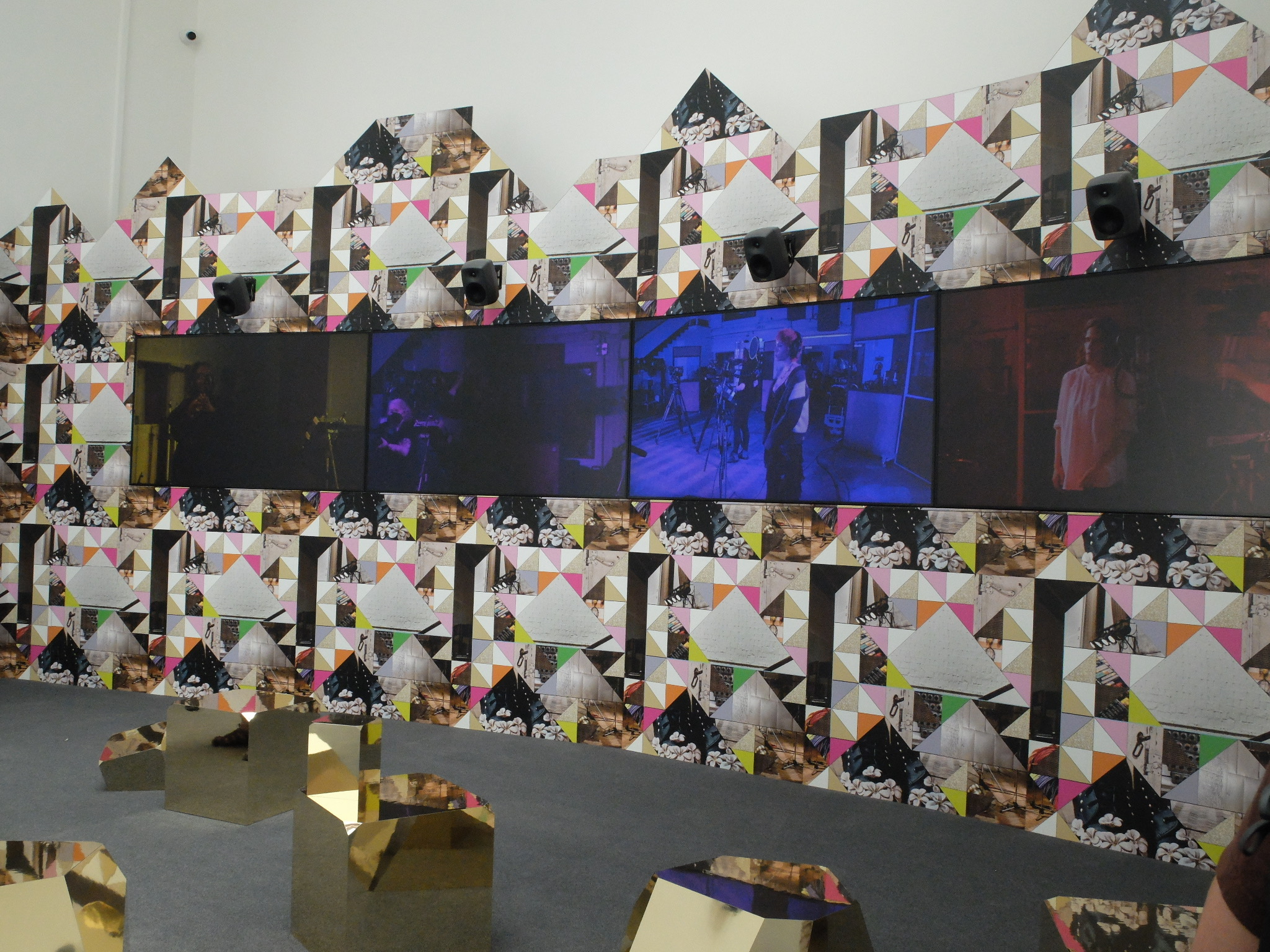 Le pavillon anglais a été recouvert très agréablement d’images et de sons. Des écrans montrent des femmes chantant des blues dans un décor d’images et de formes cubiques dorées.