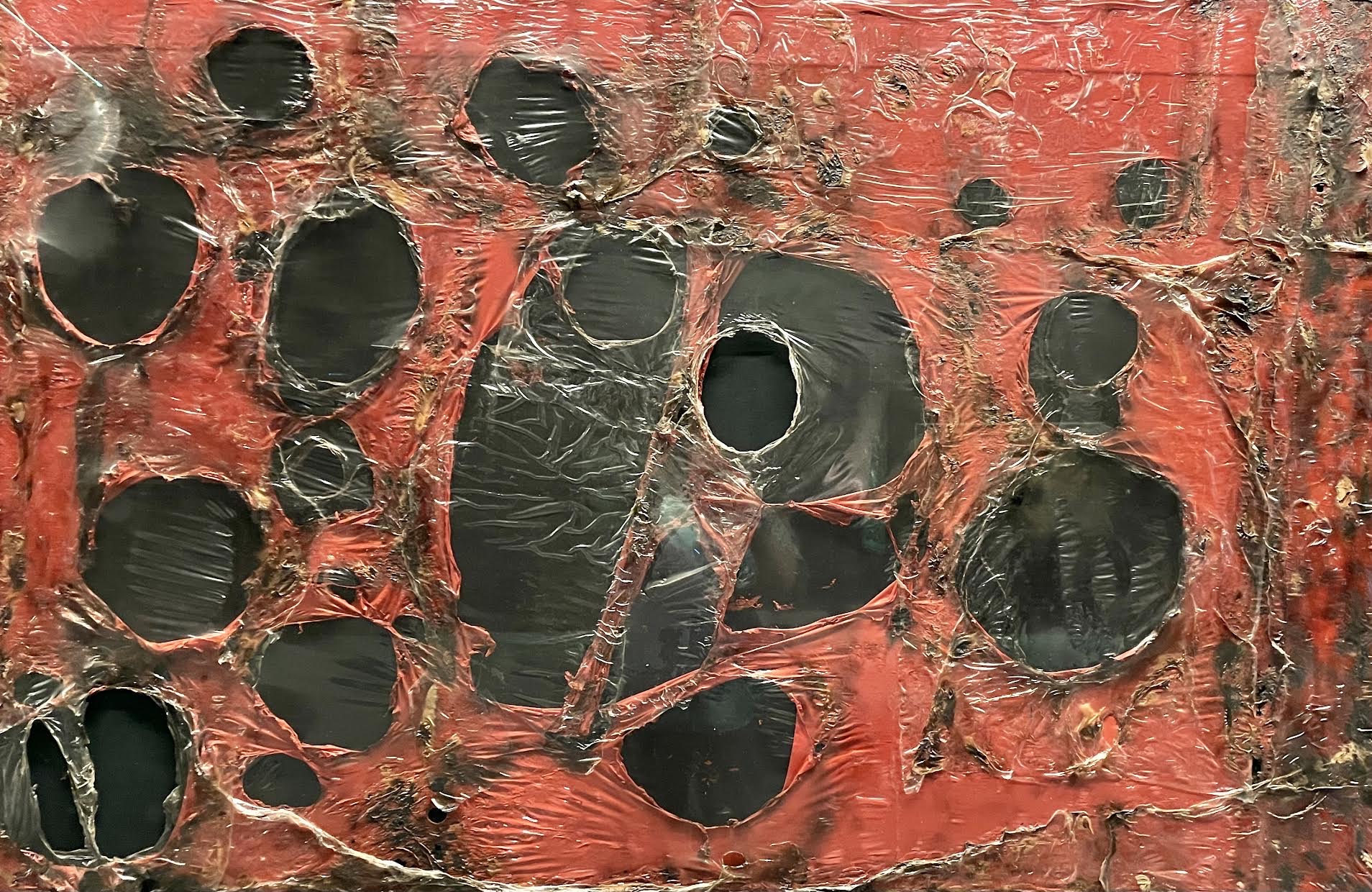 Alberto Burri qui fait fondre du plastique sur des supports de toiles