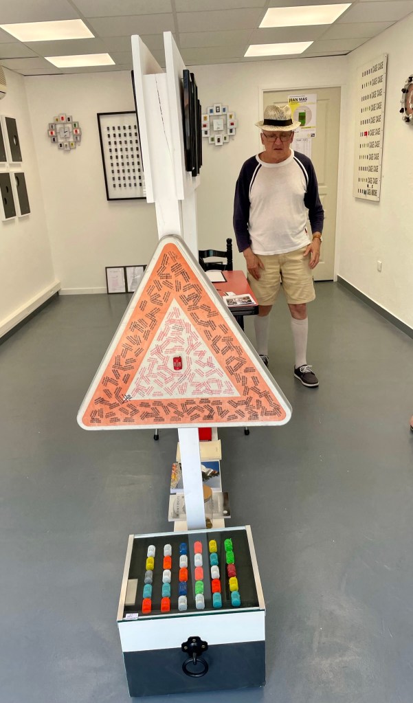 Artiste du signifiant et du signifié, ses nombreuses performances (Performas) ont jalonné l’histoire de l’Ecole de Nice et l’Art de notre temps : récemment encore, tel un homme-sandwich, il « promenait » des mots dans la rue.