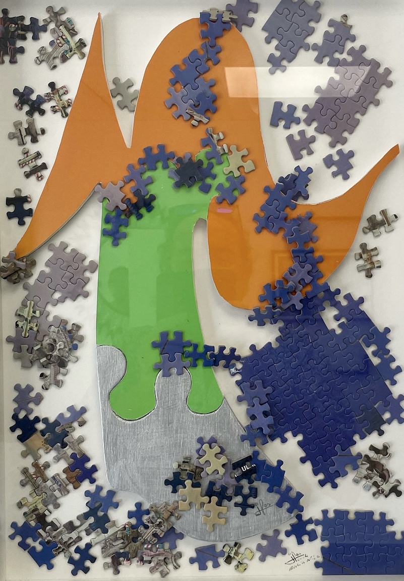 A voir dans l’exposition un beau « Peu » de Puzzles, ses Tampons l’École de Nice dont il est un des principaux tenants et en tous cas, son conceptuel le plus extrême, jouant avec les frontières de l’art, ses limites, ses bordures. Au delà de la représentation ou de l’objet, il s’amuse (sa muse) des mots, comme de couleurs ou de formes plastiques.