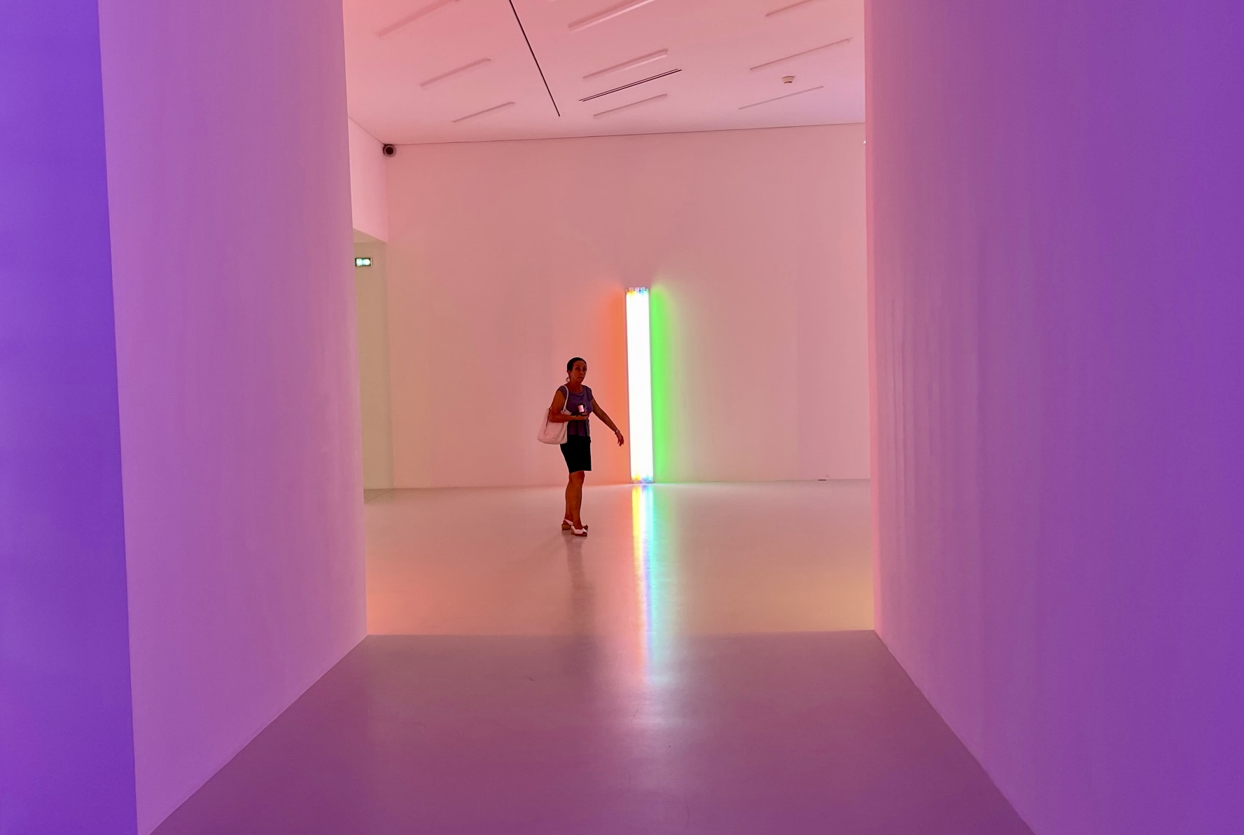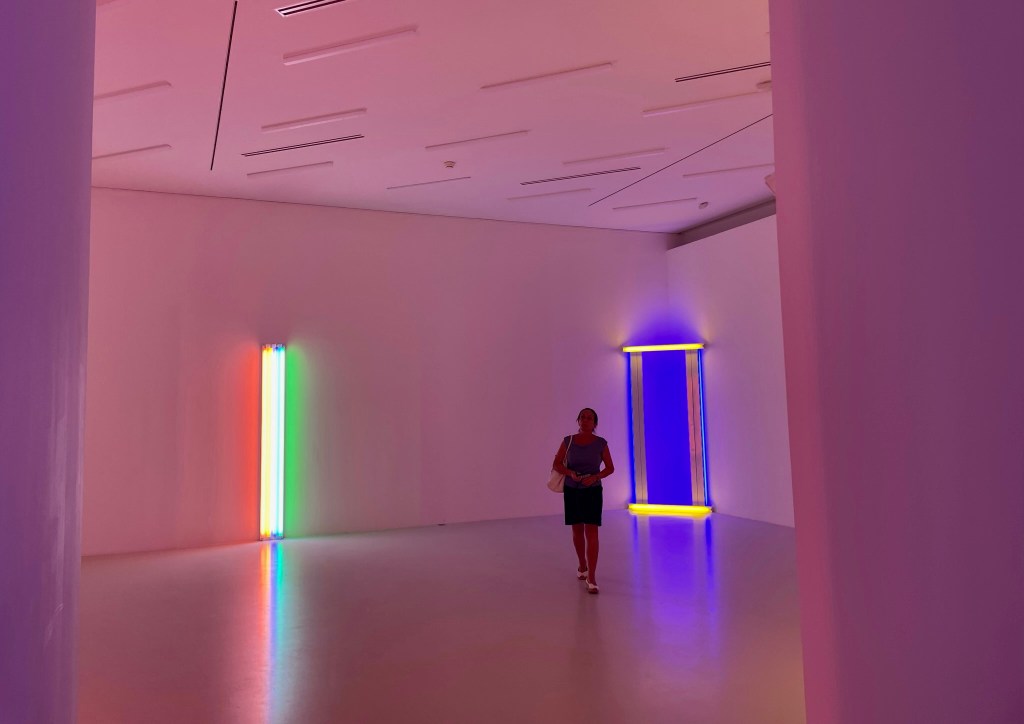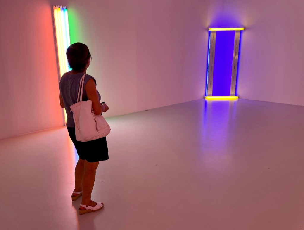 A l’aide de simples tubes fluorescents du commerce, Dan Flavin (1933-1996) a créé des installations étonnantes, belles et inspirantes. Chez lui, la lumière inonde l’espace en le dématérialisant, offrant des expériences perceptives inédites. On se promène dans ses œuvres comme dans des couleurs qui dissolvent leurs propres limites. (Exposition à la Collection Lambert)