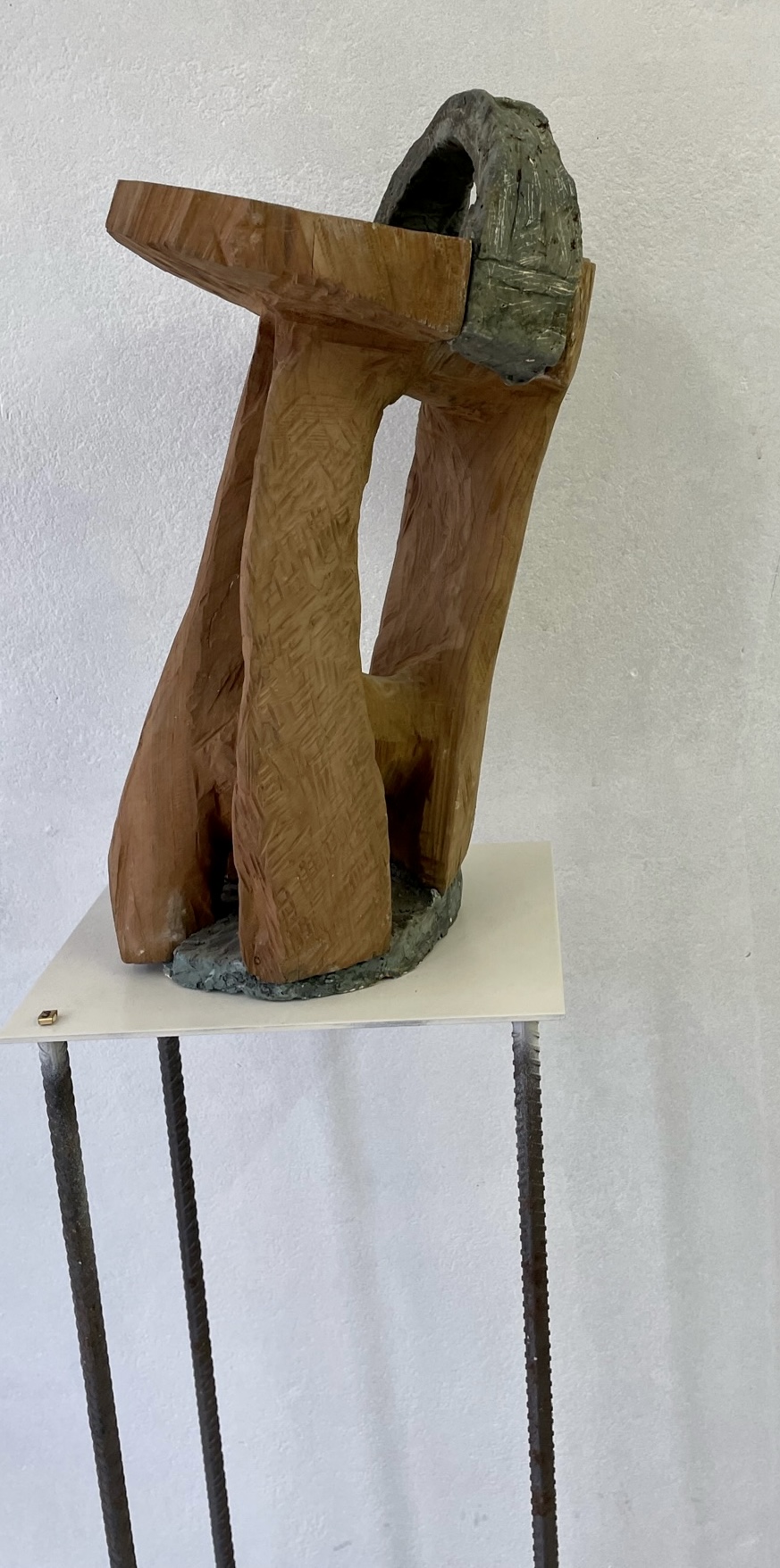 Quelques coups de tronçonneuse permettent la naissance de formes radicales, sans possibilité de retour en arrière. L’outil dessine, coupe, creuse, créant des vides et des pleins, cherchant une « allure » qui convient à ce que la matière raconte au sculpteur, ou à l’idée qu’il poursuit, au cheminement logique et inconscient de l’œuvre.