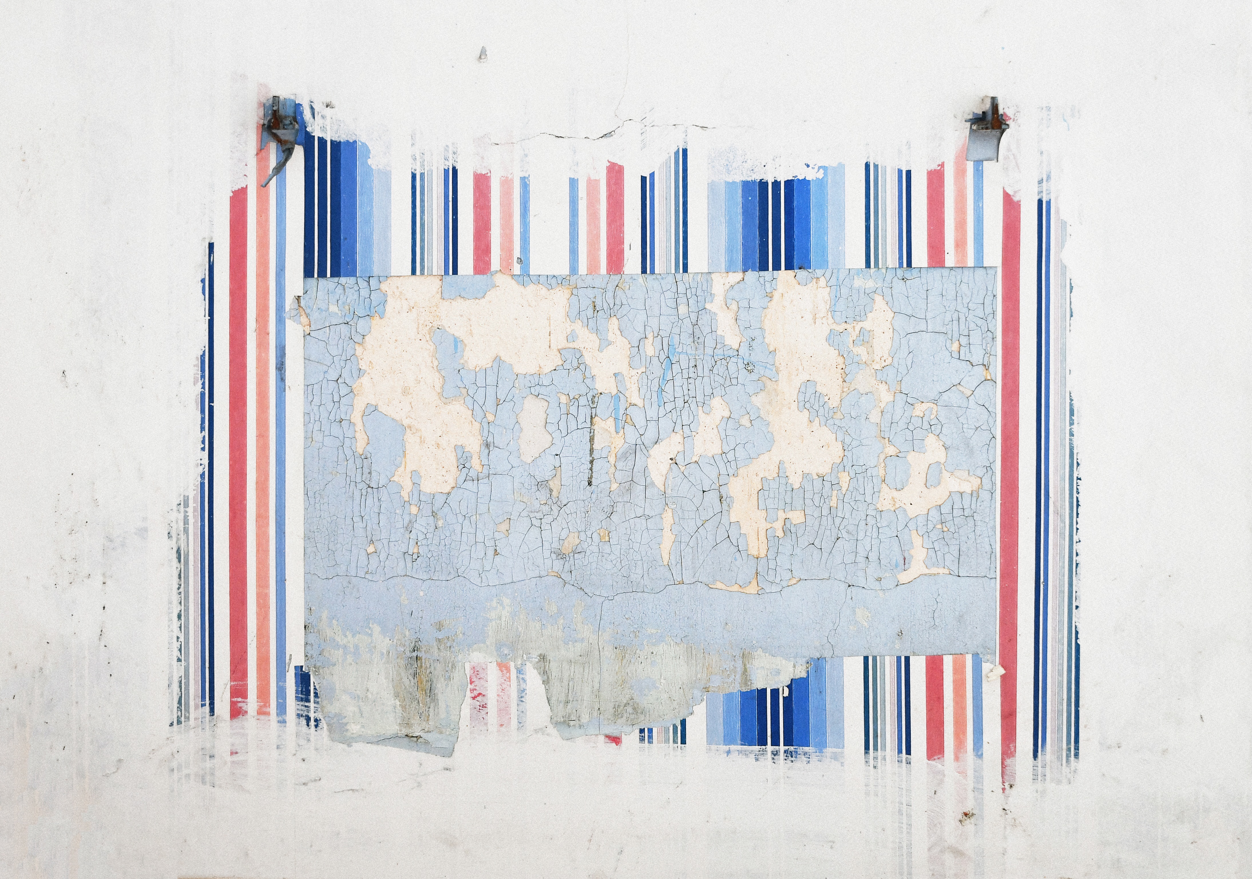 Dans d’autres photographies d’empreintes de radiateurs, on voit également l’impact de la chaleur sur la peinture. Pas la violence des brûlés d’Yves Klein, mais une chaleur plus douce et persistante qui a cuit lentement la peinture pendant des décennies. Un marron doré aux fines craquelures semble s’imposer sur les couleurs alentours. Le destin de la peinture n’est-il de se craqueler ?