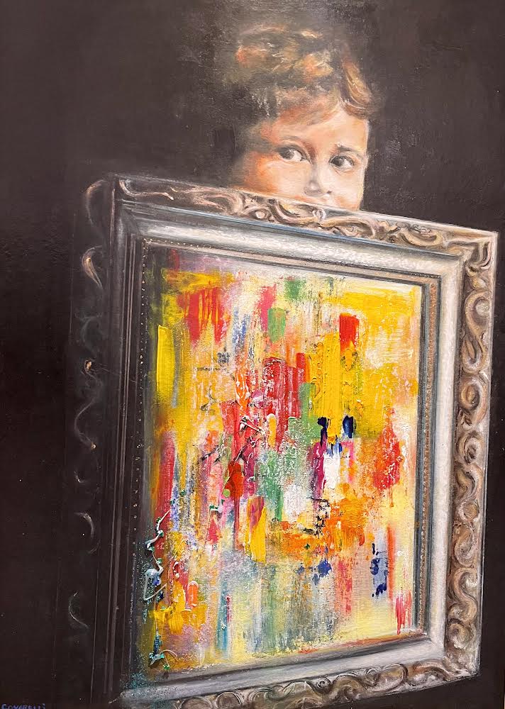 L’enfant tient également une place importante dans les yeux et le cœur de l’artiste : il est toujours roi, ceint de la couronne ou non. Petit garçon ou petite fille, toujours un peu déguisés, ils posent sur nous leur regard à la fois interrogateur et complice. L’enfant peut être aussi triste, dans une attente immobile ou créateur, nous montrant fièrement le tableau abstrait qu’il vient de peindre.