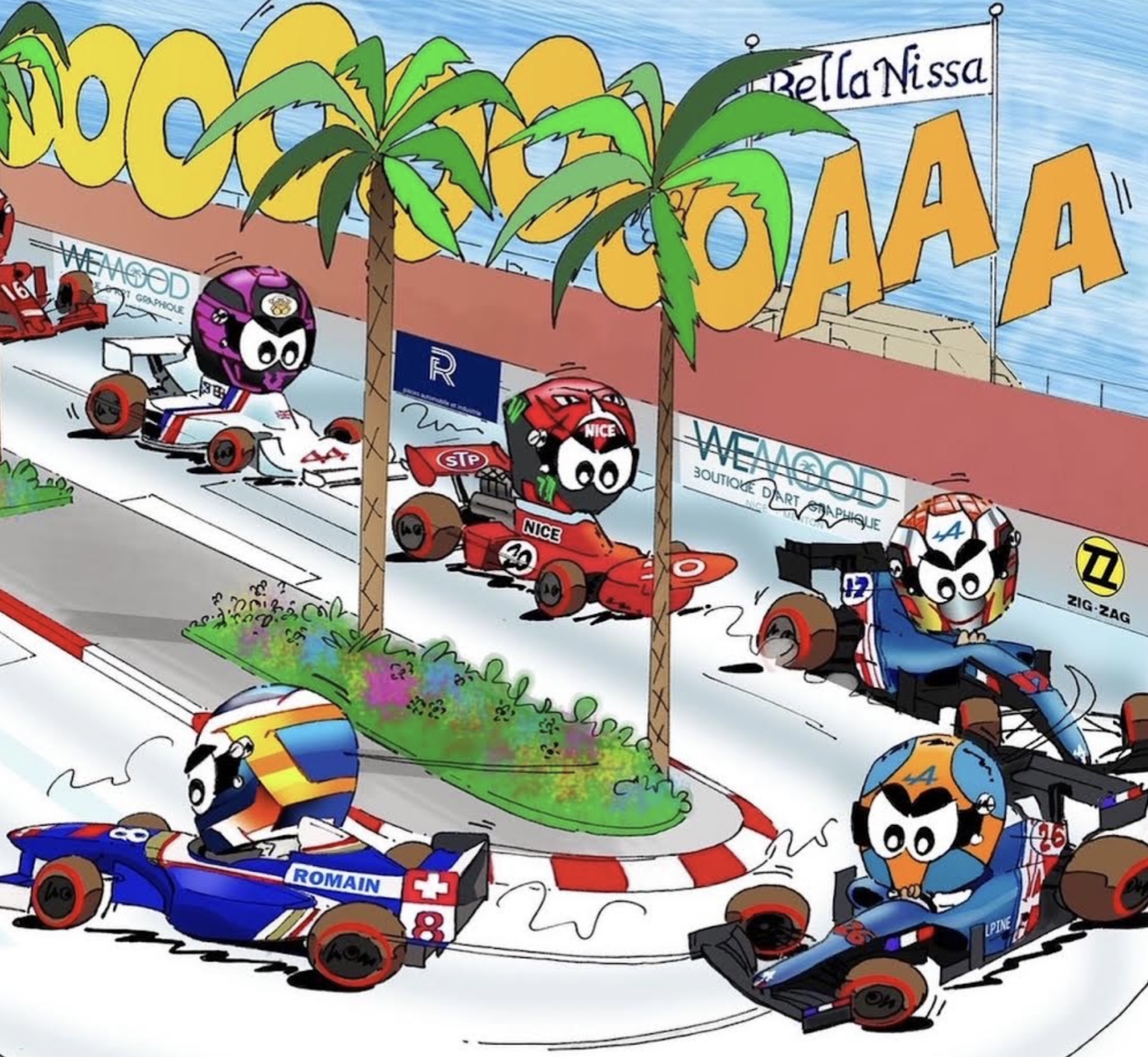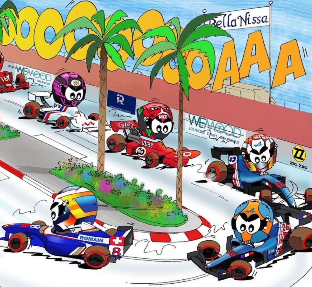 Dans ce nouvel opus, il a choisi comme cadre, comme circuit, la ville de Nice qu’il connaît bien. Il revisite la course qui a réellement existé entre 1932 et 1947 où se disputaient les Maserati, Bugatti et Alfa Romeo. Des pilotes prestigieux, un peu oubliés aujourd’hui comme Louis Chiron, Tazio Nuvolari, Luigi Villoresi et bien d’autres s’y sont illustrés.