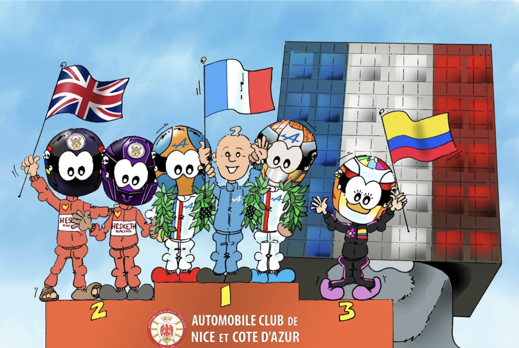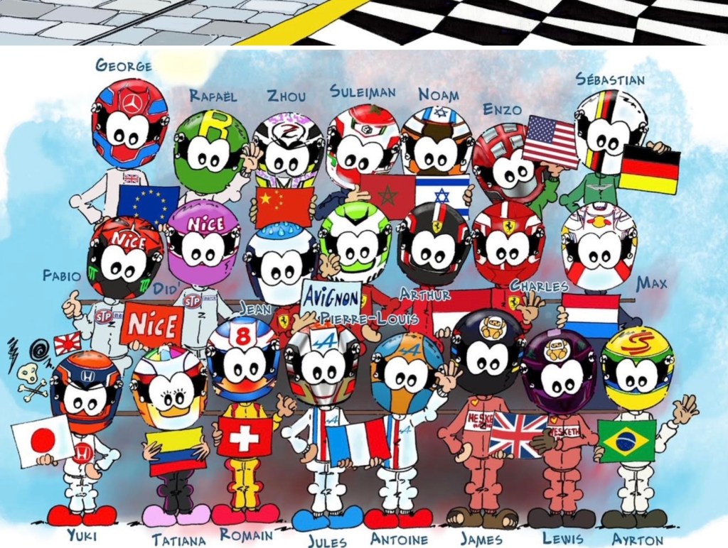 Comme à son habitude, Yvon Amiel met sur la ligne de départ les plus grands noms de la course automobile : Arthur Leclerc et son frère Charles pour Monaco, Suleiman et Noam pour le Maroc et Israël, James et Lewis pour l’Angleterre, Yuko pour le Japon, Ayrton pour le Brésil et, fait exceptionnel, une femme, Tatiana Calderon, Colombienne, une des meilleures de sa génération, qui a conduit aux 24 heures du Mans et aux États Unis, ainsi qu’une quinzaine d’autres noms prestigieux dont Jules Bianchi, jeune pilote niçois prometteur malheureusement décédé des suites son accident, après plusieurs mois de coma, au Grand Prix du Japon en 2014, et bien sûr, Rafaël, son héros récurent.
