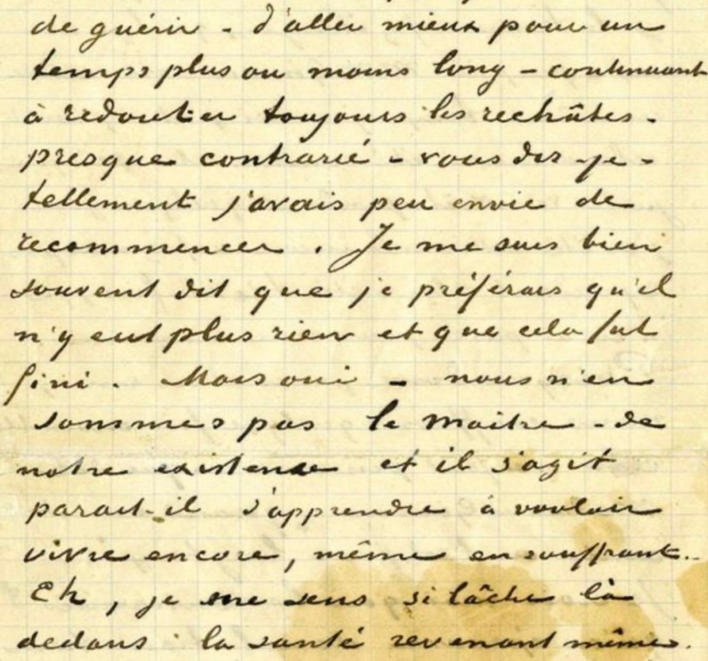 Tout ce que j’ai appris sur toi a créé une proximité, une intimité entre nous. Aussi, j’ai eu envie, moi aussi, de t’écrire des lettres. Malgré le siècle qui nous sépare, je suis sûr que tu n’aurais aucun mal à les lire – la langue n’a pas beaucoup bougé en cent vingt ans.