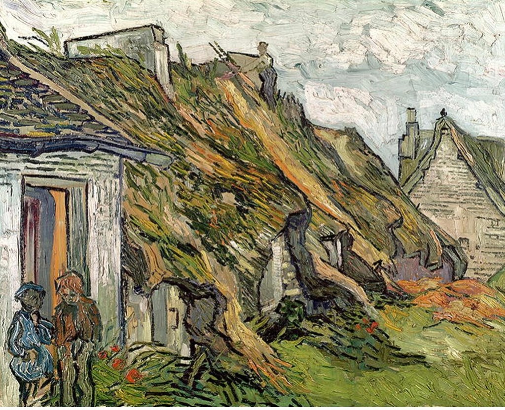 Dans une lettre à Theo, tu décris une vision : “deux chaumières en ruine abritées par un seul toit de roseaux, tels deux êtres humains décrépits qui ne forment qu’un seul et se soutiennent l’un l’autre”. Cette belle image me fait penser à un de tes derniers tableaux, le dernier peut-être (ils sont deux ou trois à se disputer ce titre).