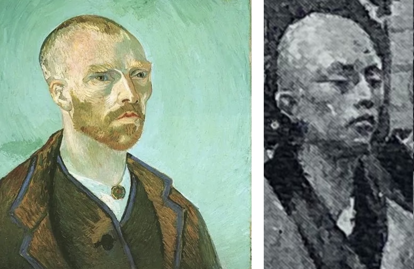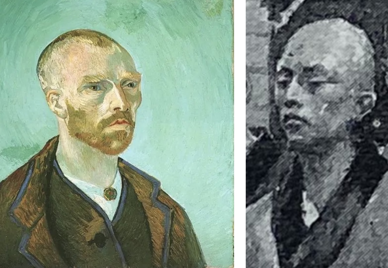 La manière dont il se représente dans son Autoportrait de juin 1888 provient de toute évidence d’un dessin de bonzes dans l’édition de cet ouvrage.