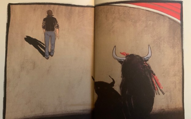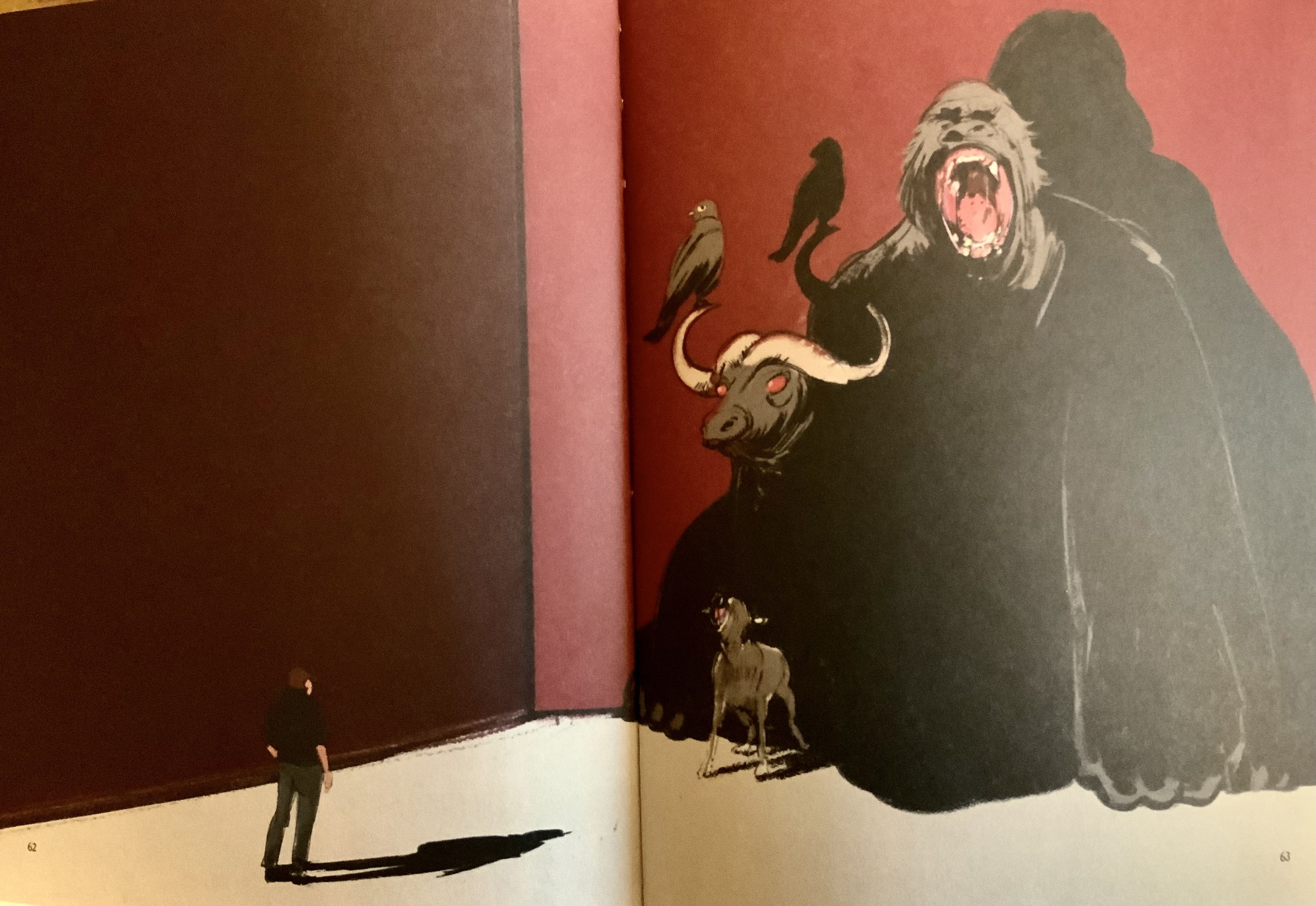 En revisitant certaines photos connues de l’artiste ou en le recréant dans des attitudes inédites, Stéphane Manel arrive dans des doubles planches admirablement composées de plusieurs dessins, à condenser des cauchemars de l’artiste. Son gorille à la bouche ouverte découvrant ses dents menaçantes, une obsession de l’artiste, accompagné d’un taureau aux yeux rouges et d’un chien hurlant dominant un Bacon tout petit est saisissant.