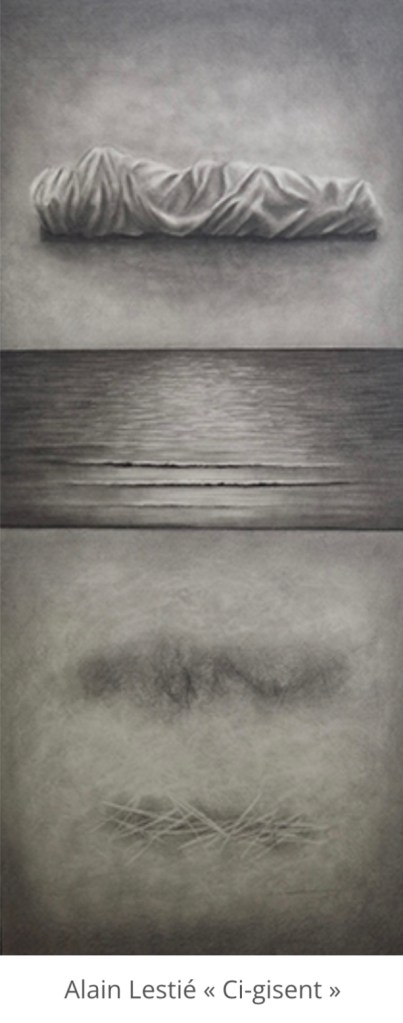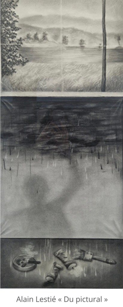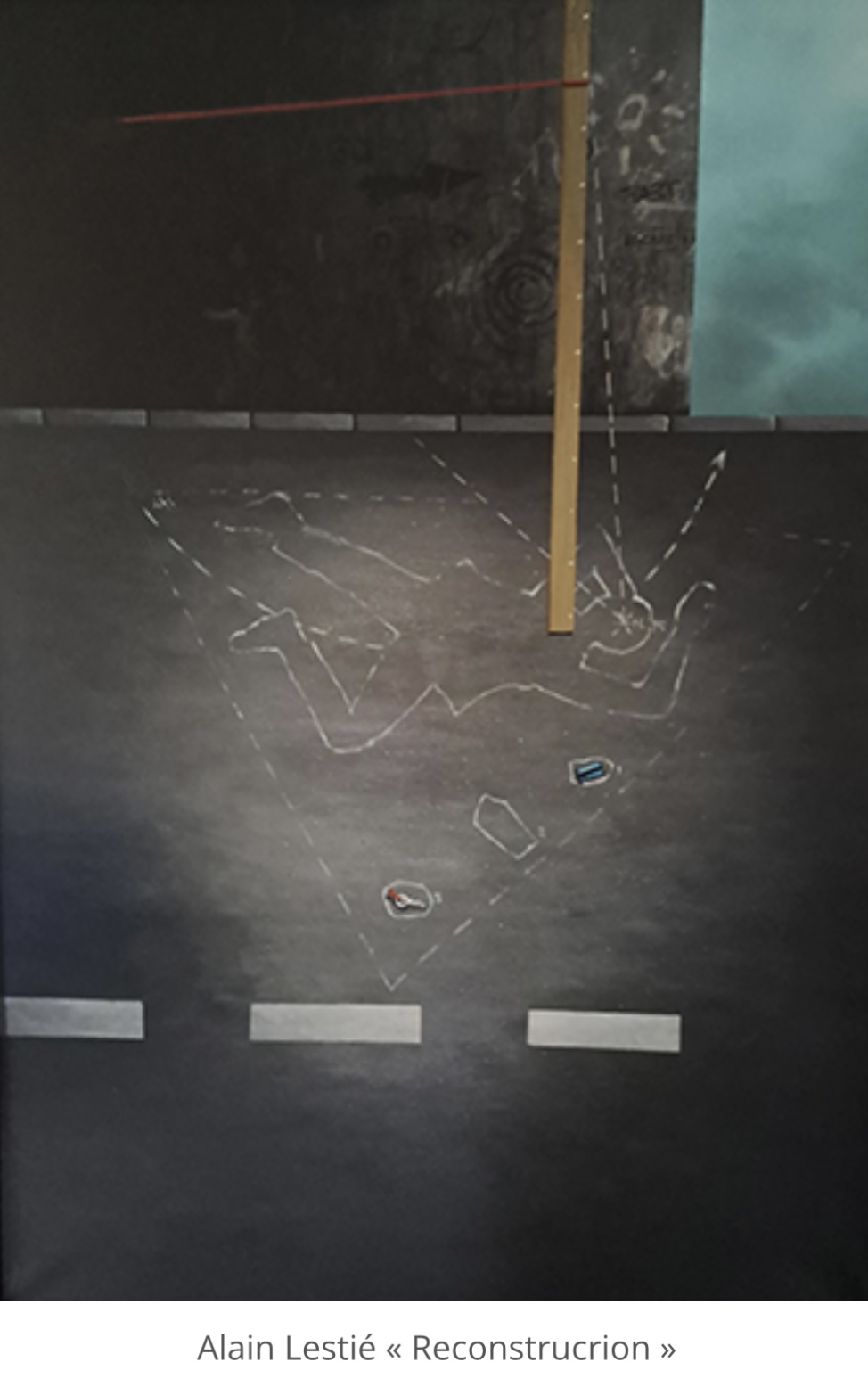 Dans ses tableaux apparaissent des mises en scènes troublantes où chacun peut trouver son propre sens. Des « peintures dessinées » qu’on peut voir comme les photographies d’un film (plutôt policier) choisies par le réalisateur pour le promouvoir, et donc posséder une densité certaine pour le représenter et nous donner envie d’aller le voir… Mais les films d’Alain Lestié n’existent pas, il propose à l’imagination de chacun de les créer à partir d’indices qu’il nous tend. Chaque œuvre contient un suspens, à nous d’y trouver un sens, s’il y a quelque chose à voir ou à savoir… Les poètes et nombre d’auteurs se sont intéressés à son travail sensible et porteur de messages presque compréhensibles mais en fait remplis d’interrogations.