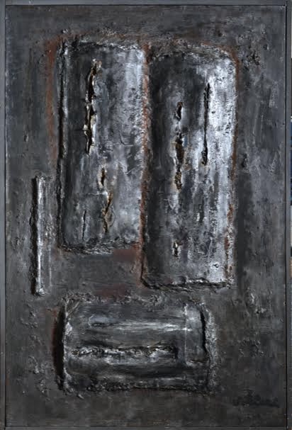 Ses nouvelles peintures-sculptures telluriques renvoient au monde son image de dureté : « un vibrant chaos informel, mélange du fond et des motifs, un volcanisme de genèse » (Pierre Gueguen)