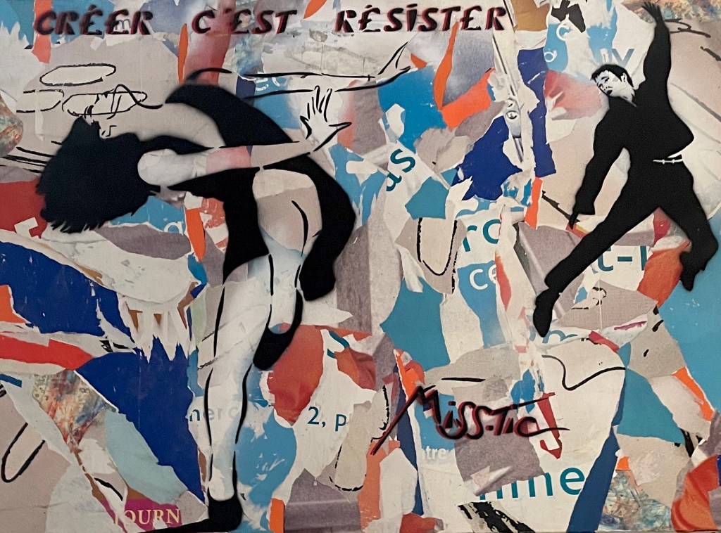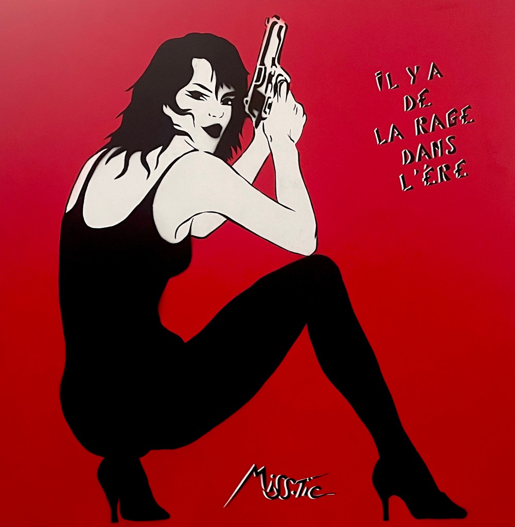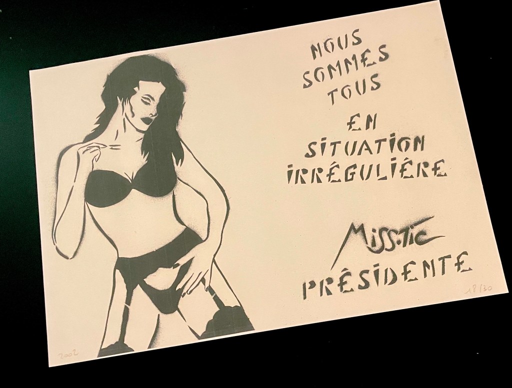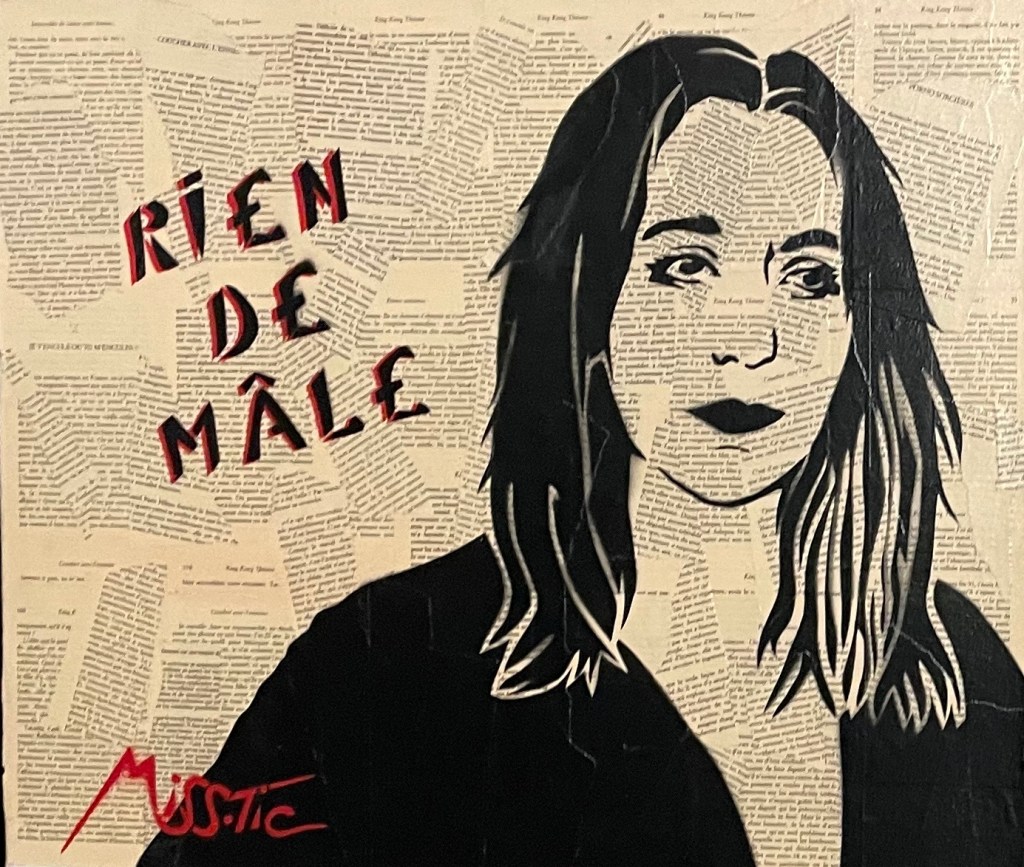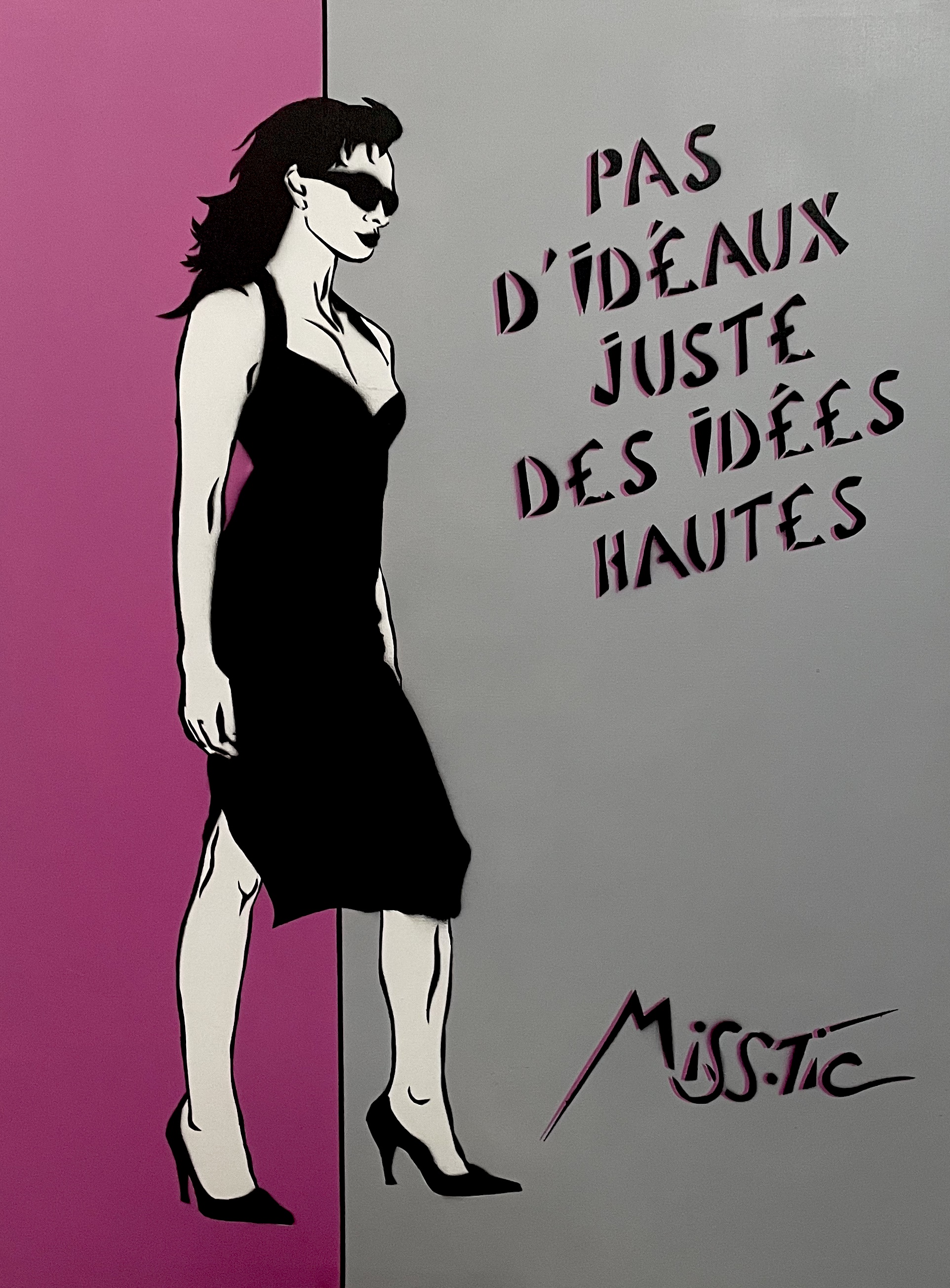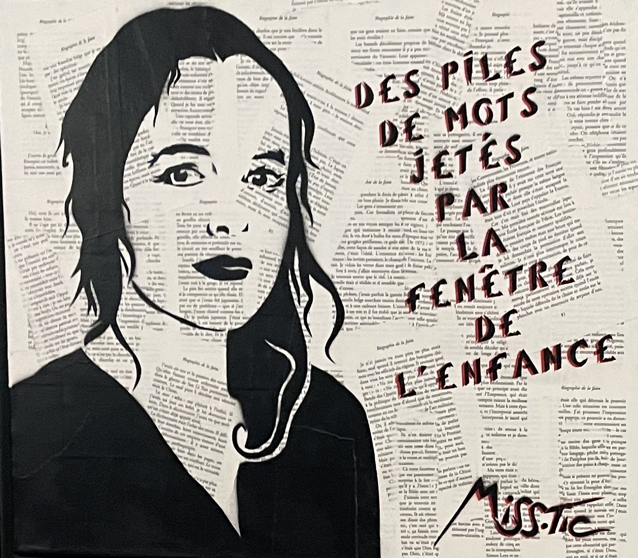 Une Miss Tic (sans k) habitée par les mots. Devenue poètesse des rues de Paris, plusieurs fois arrêtée et condamnée, elle a été heureusement soutenue par les artistes et leurs amis comme Agnès B. Elle finira par s’entendre avec la municipalité toute heureuse de lui offrir des murs pour enchanter les rues (quelques œuvres sont toujours là).
