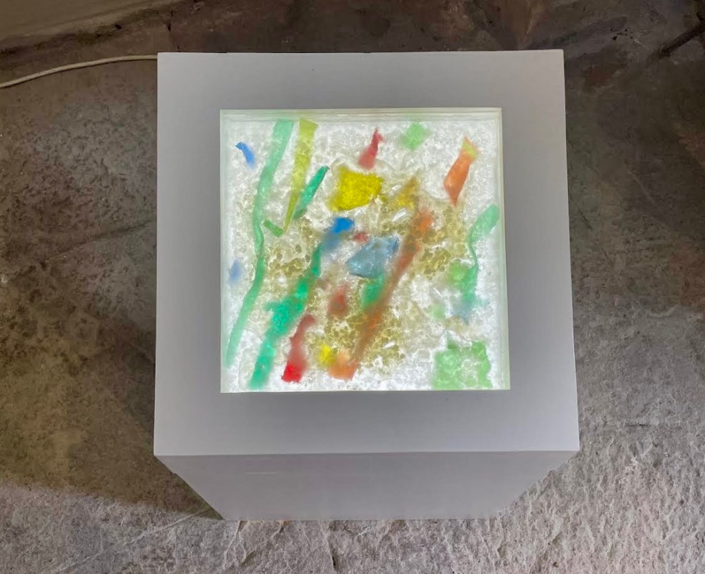 Face à l’église, le bureau du Maire accueillait l’exposition de Magali Braganti, une céramiste aimant la matière et présentant des formes brutes de sphères éclatées et des fragments d’éléments qui semblent s’être libérés de la pesanteur pour envahir le bureau.