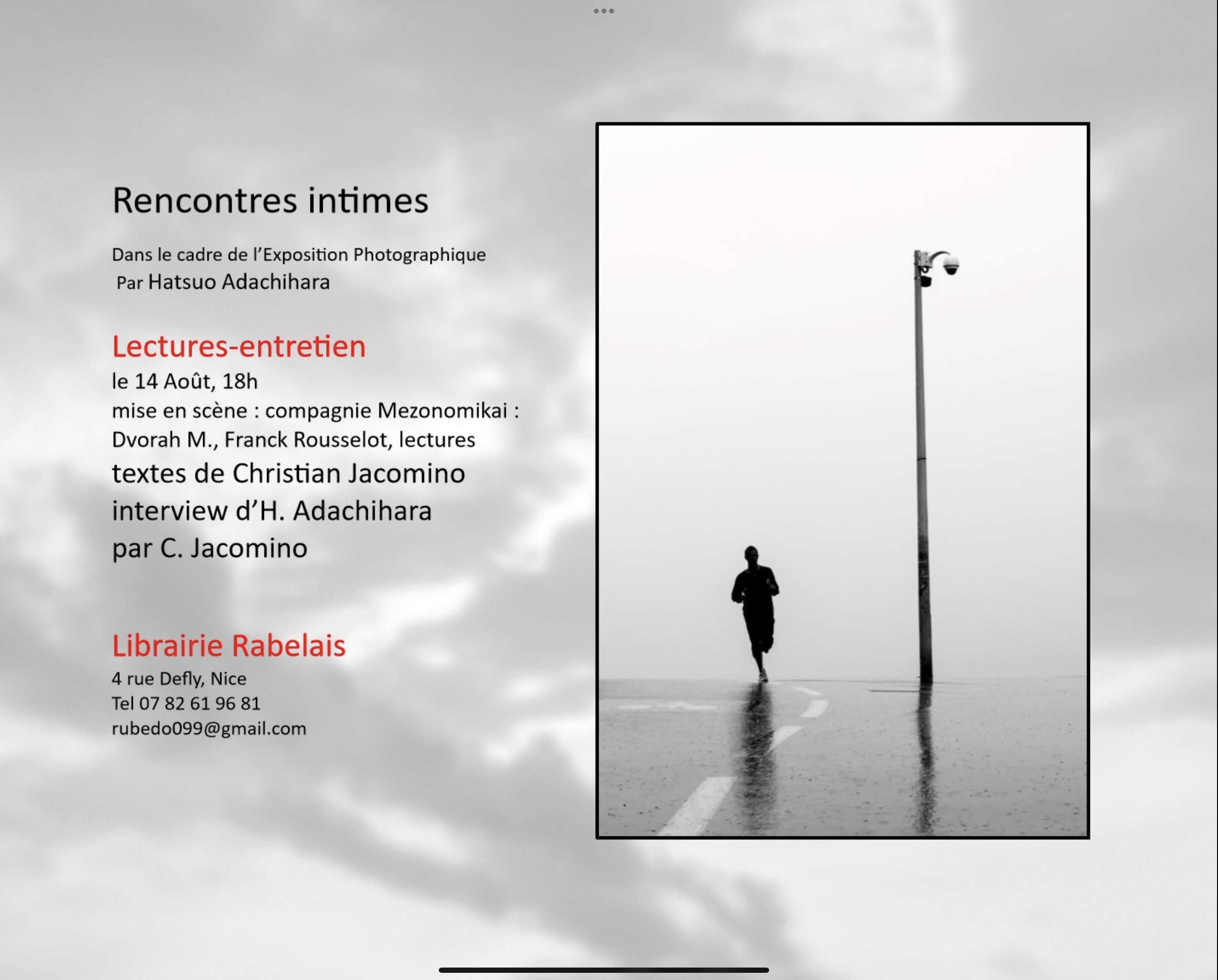 C’est ce qui intéresse particulièrement Hatsuo Adachihara, un photographe japonais qui vit à Nice depuis près de vingt ans. Ses yeux se sont habitués à la lumière, aux couleurs de la ville et de la région qu’il parcourt inlassablement à la recherche de paysages inspirants.