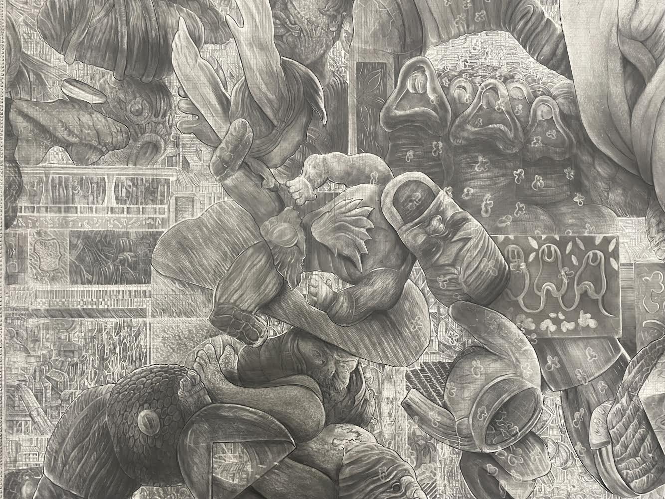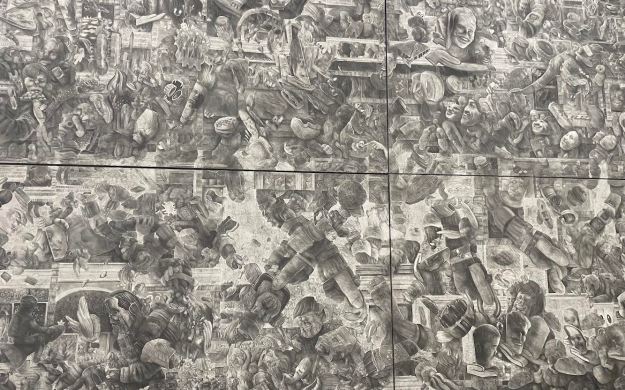 il explique que son Arcadia résonne avec notre temps, renvoyant à une mémoire collective au réalisme exacerbé. Elle est une satire de l’univers de la consommation, du surpeuplement d’un monde au bord de l’hubris.