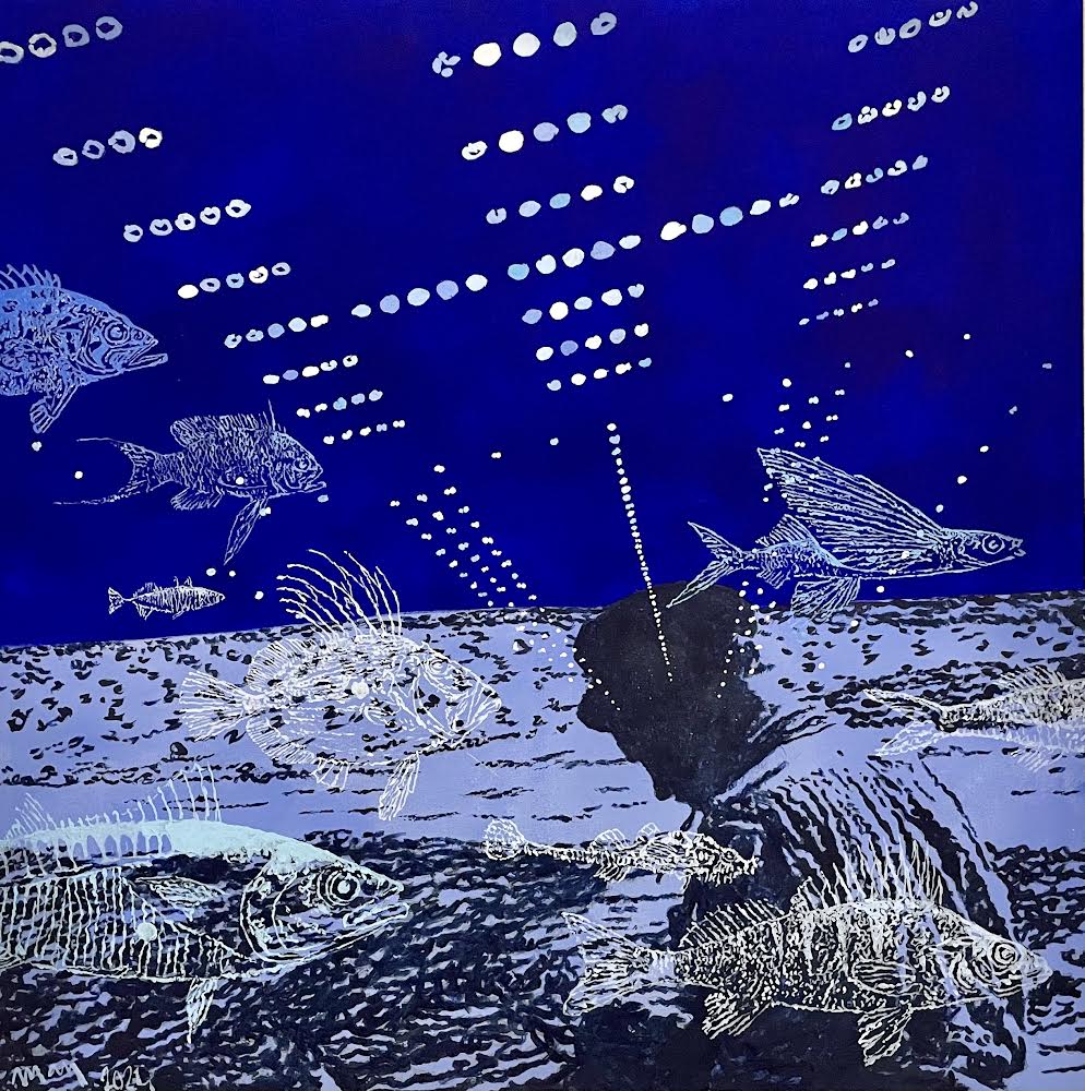 La mer, les pécheurs, les poissons sous un ciel étoilé bleu-nuit évidemment.