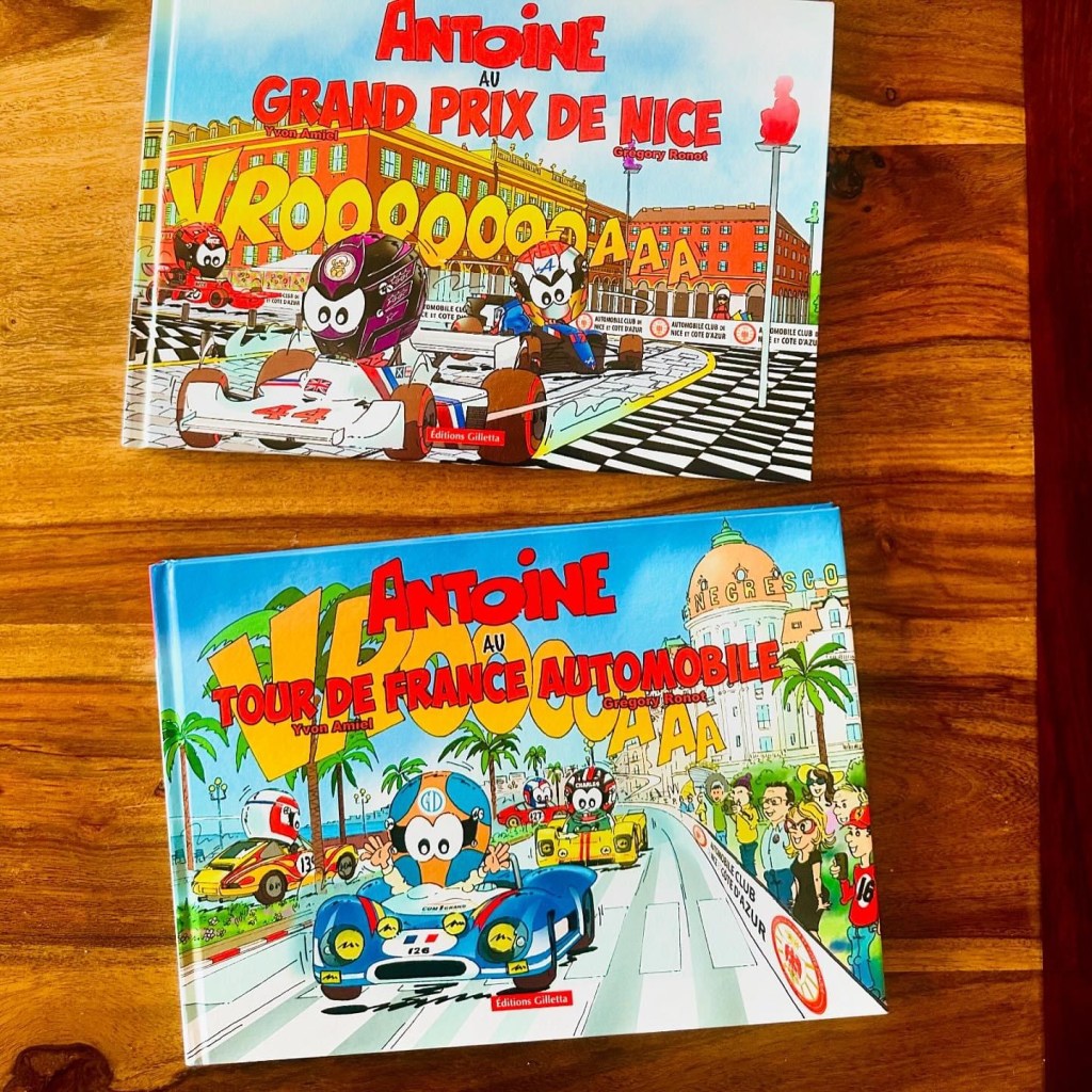 Les auteurs présents : Yvon Amiel, auteur de près de vingt albums (Editions Gilletta) mettant en scène son héros : Antoine le Pilote, nous fait vivre par ses dessins colorés et ses textes enlevés les courses de F1. Mêlant les pilotes, les époques, les voitures, il nous plonge dans des moments intenses de courses mythiques.