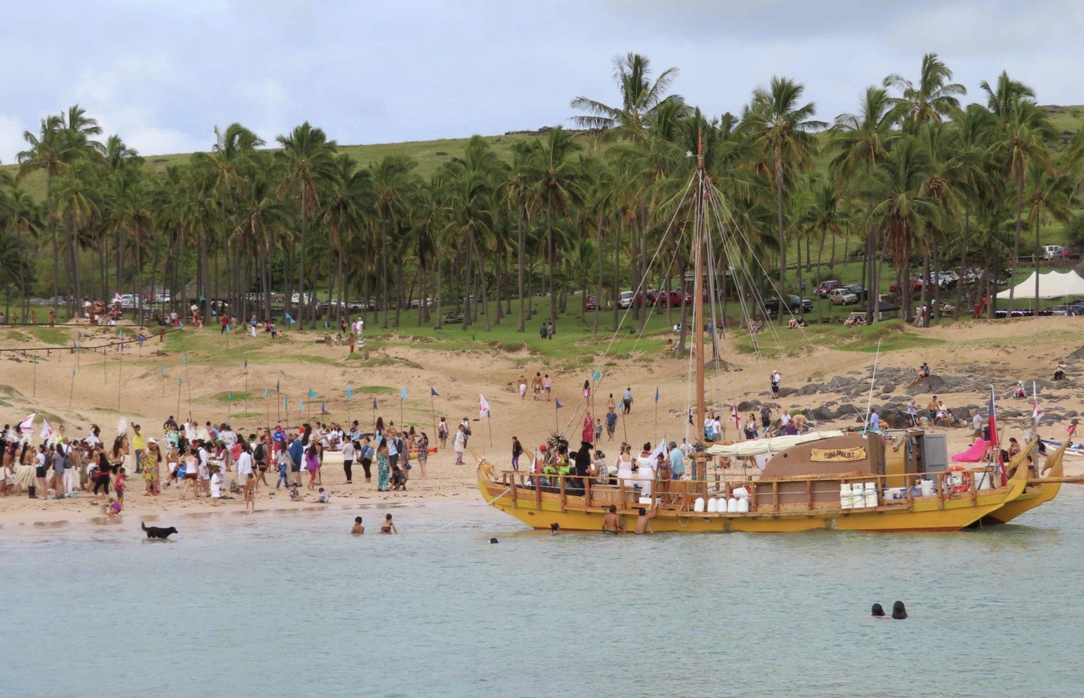 On peut imaginer, comme les légendes le rapportent, un grand bateau d’une centaine de personnes débarquant il y a un millier d’années (ou plus) sur cette île vierge de toute humanité. Le chef de cette embarcation, « le roi ? », a sept fils. Il partage l’île en sept zones avec chacune un accès à la mer et se rejoignant au centre de l’île, chacun de ses fils ayant charge de développer l’agriculture et bien sûr la pêche dont ils sont déjà des grands praticiens. Ils amènent avec eux leur culture polynésienne qui va d’adapter et forcément évoluer dans ce nouvel environnement.