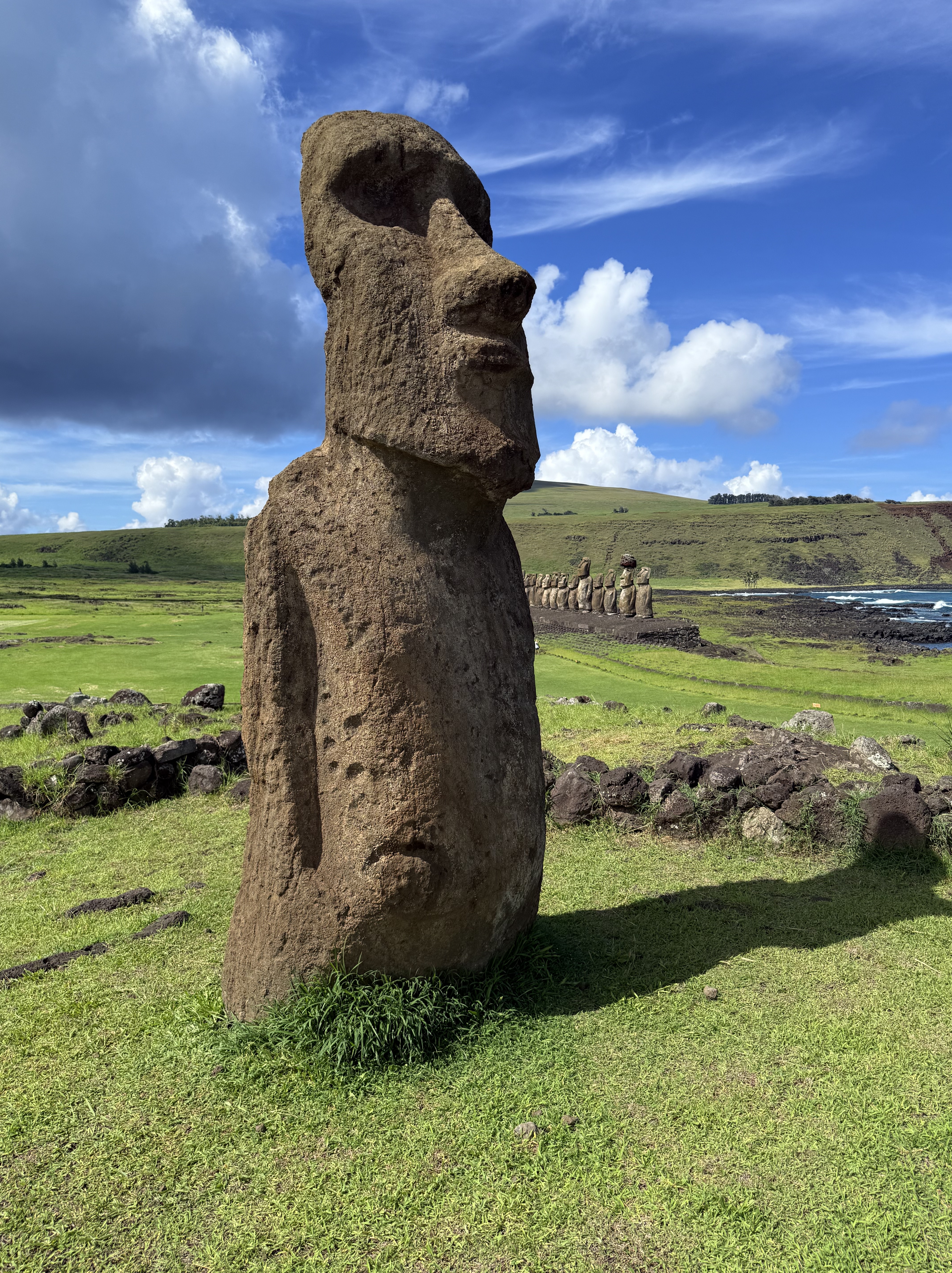 Quel est le sens de ces plateformes où sont dressés les moaïs dos à la mer, pourquoi certains ont des coiffes, des tatouages et des yeux et d’autres non ? Pourquoi certains ont de grandes oreilles et les autres des petites, pourquoi certains ont été couchés, d’autres sculptés mais laissés sur place dans la carrière où tous sont issus, etc., et bien sûr, à quelle date ont-ils été sculptés et érigés et que représentent-ils ? Un grand nombre d’autres questions, je suppose, vont se poser à nous…