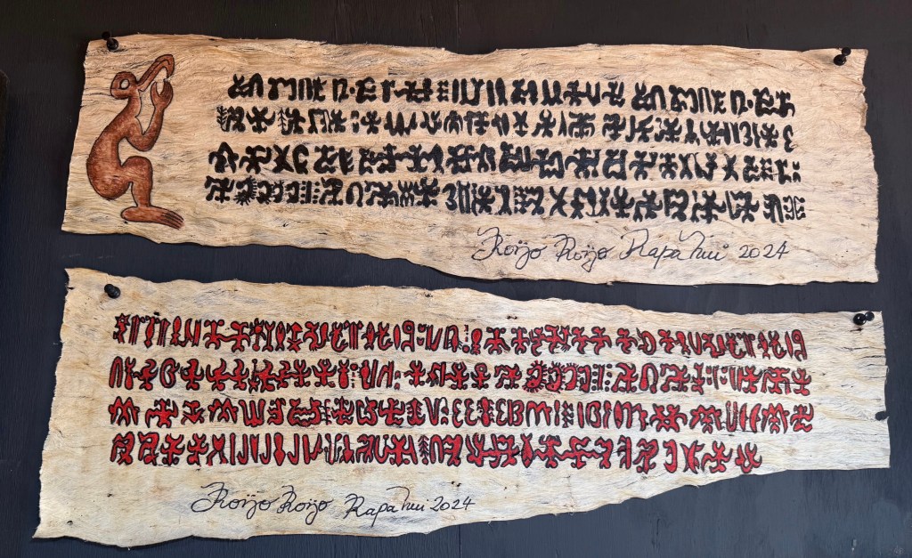Alors que les grandes civilisations du pourtour de la Méditerranée ont mis des milliers d’années pour parfaire cette invention, en peu de siècles, les Rapa Nui ont créé une écriture qui continue à interroger les linguistes qui ne l’ont toujours pas déchiffrée (sur Internet, il y a des centaines de pages sur le sujet).