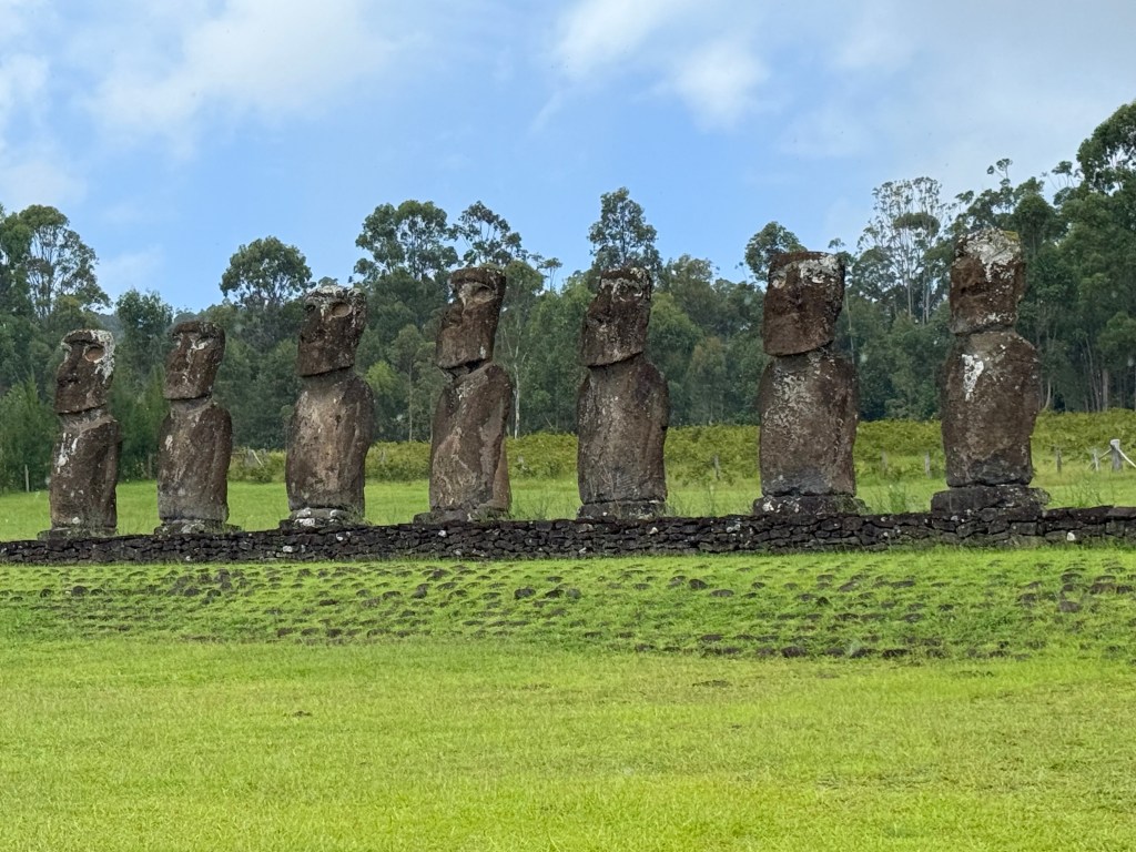Ils sont très beaux, bien conservés, restaurés scientiquement par l’américain William Mullow et le Rapa Nui Gonzalo Figueroa. Le site est superbe, et vu le nombre de visiteurs, on a l’impression que c’est le plus touristique. On a eu beaucoup de chance d’être pratiquement les seuls sur les autres sites. Des expériences inoubliables.
