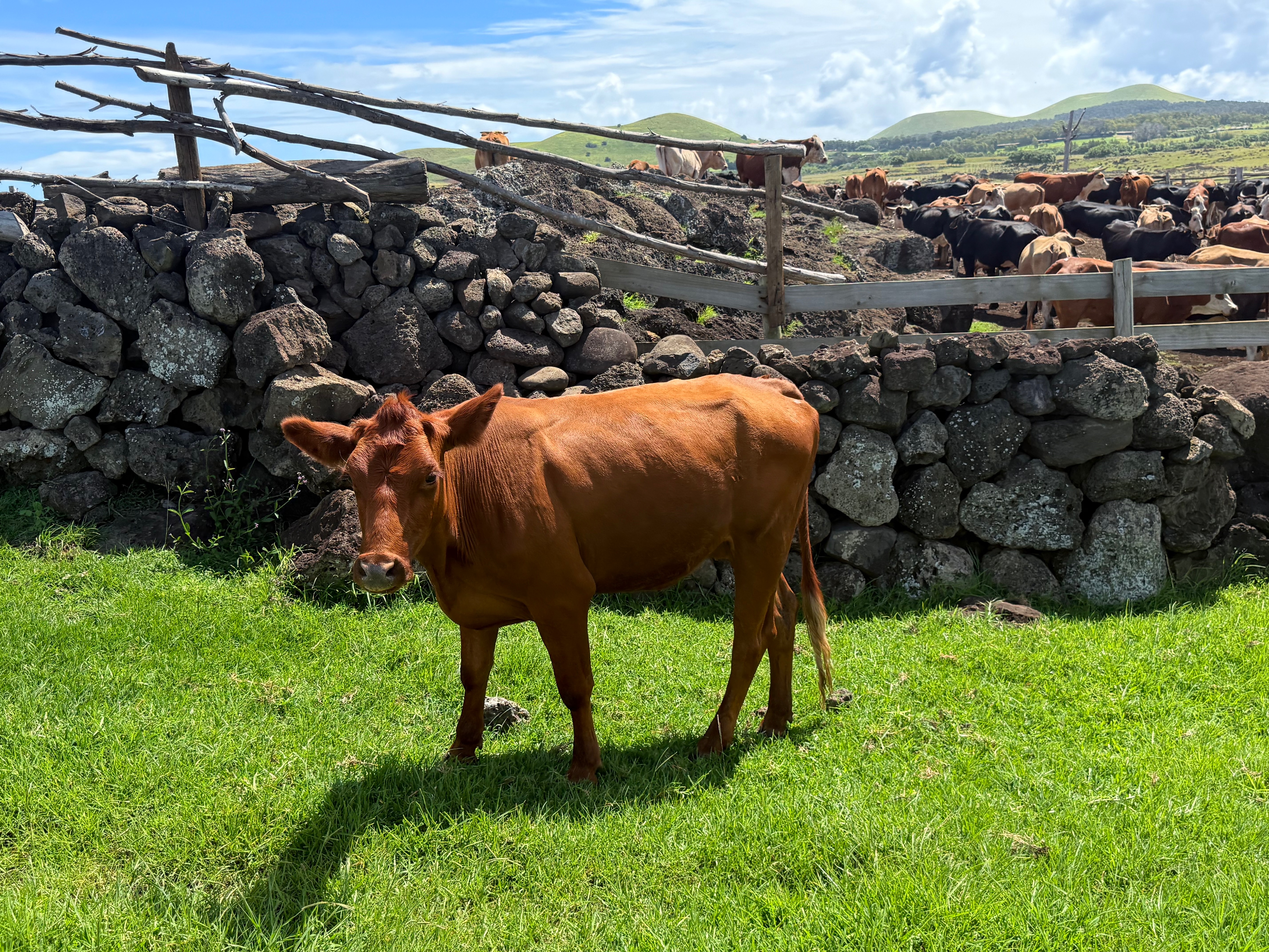 Les animaux ont ici une liberté comme nulle part ailleurs : poules, coqs, chiens, chats, chevaux, vaches ont l’air partout chez eux. Un taureau m’a fixé un peu agressif, genre : « qu’est-ce que tu fais là ? » alors que je prenais gentiment des photos. Je ne me suis pas attardé…