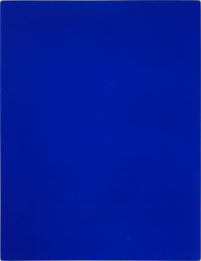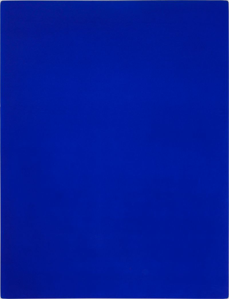 Yves Klein, IKB 3, Monochrome bleu, 1960 Pigment pur et résine synthétique sur toile marouflée sur bois 199 x 153 cm. Achat en 1974 État, Fonds national d’art contemporain. Attribution au Musée national d’art moderne / Centre de création industrielle le 11/12/1975 Collection Centre Pompidou, Paris Musée national d’art moderne – Centre de création industrielle.