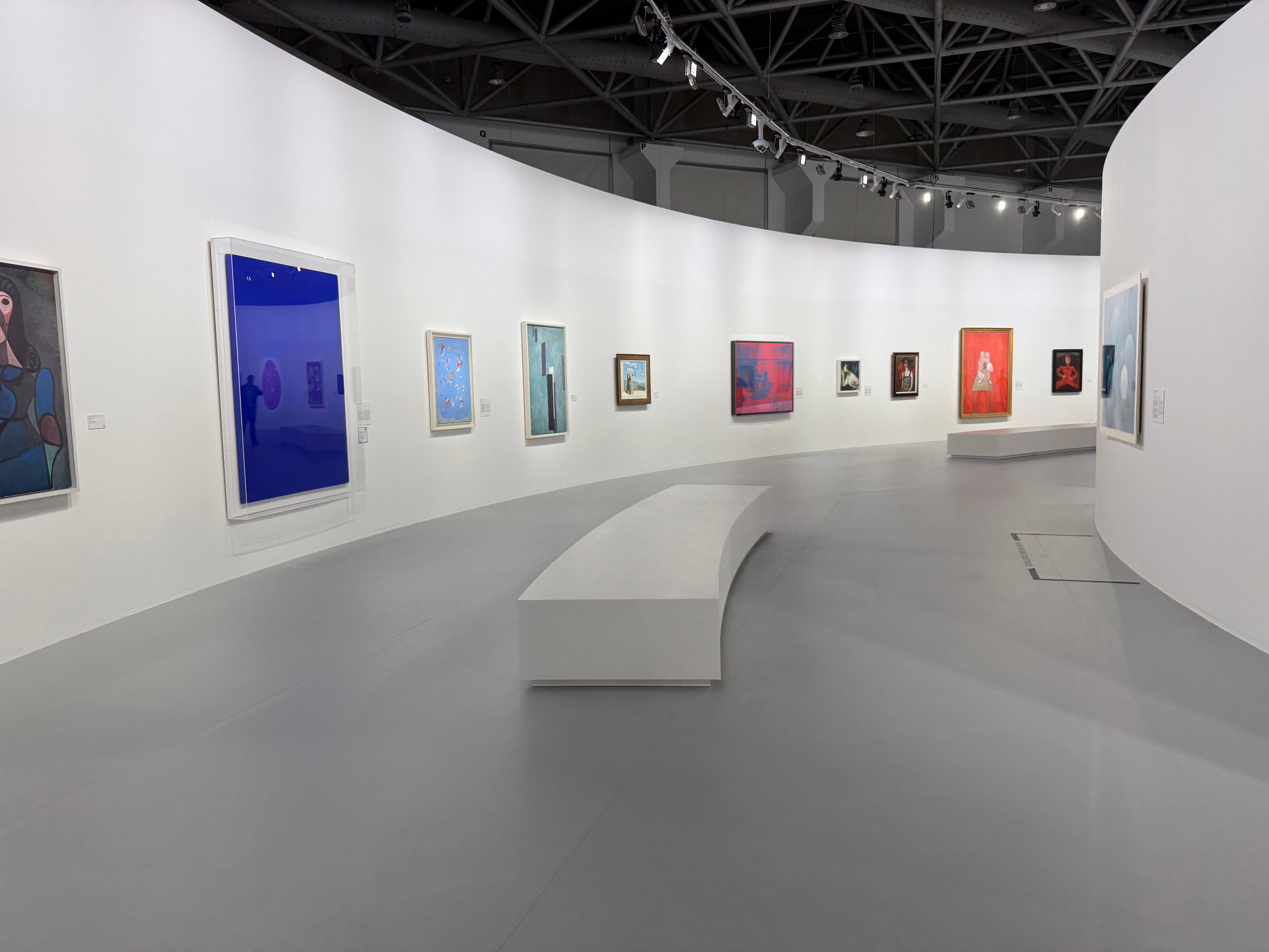 Les chefs d’œuvre du couloir périphérique (plus de 100), classés par couleur, en dehors de toute autre considération, permettent cette plongée immersive dans la couleur. Parmi les artistes exposés figurent Matisse, Picasso, Kandinsky, Magritte, Modigliani, Chagall, Dalí, Basquiat, Bacon et des designers comme Jean Prouvé ou Philippe Starck.